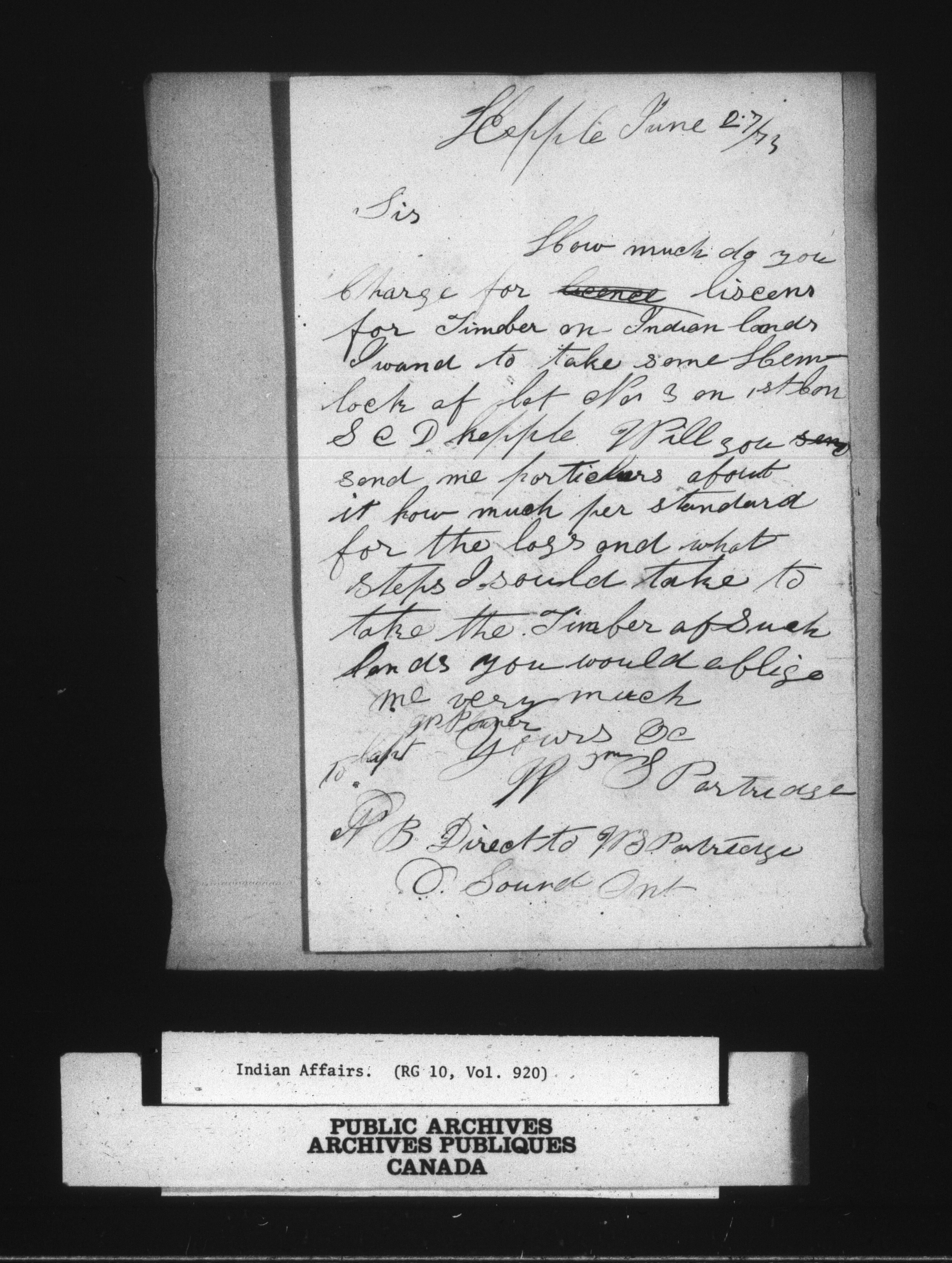Department of Indian Affairs : Wiarton Land Office : C-14825