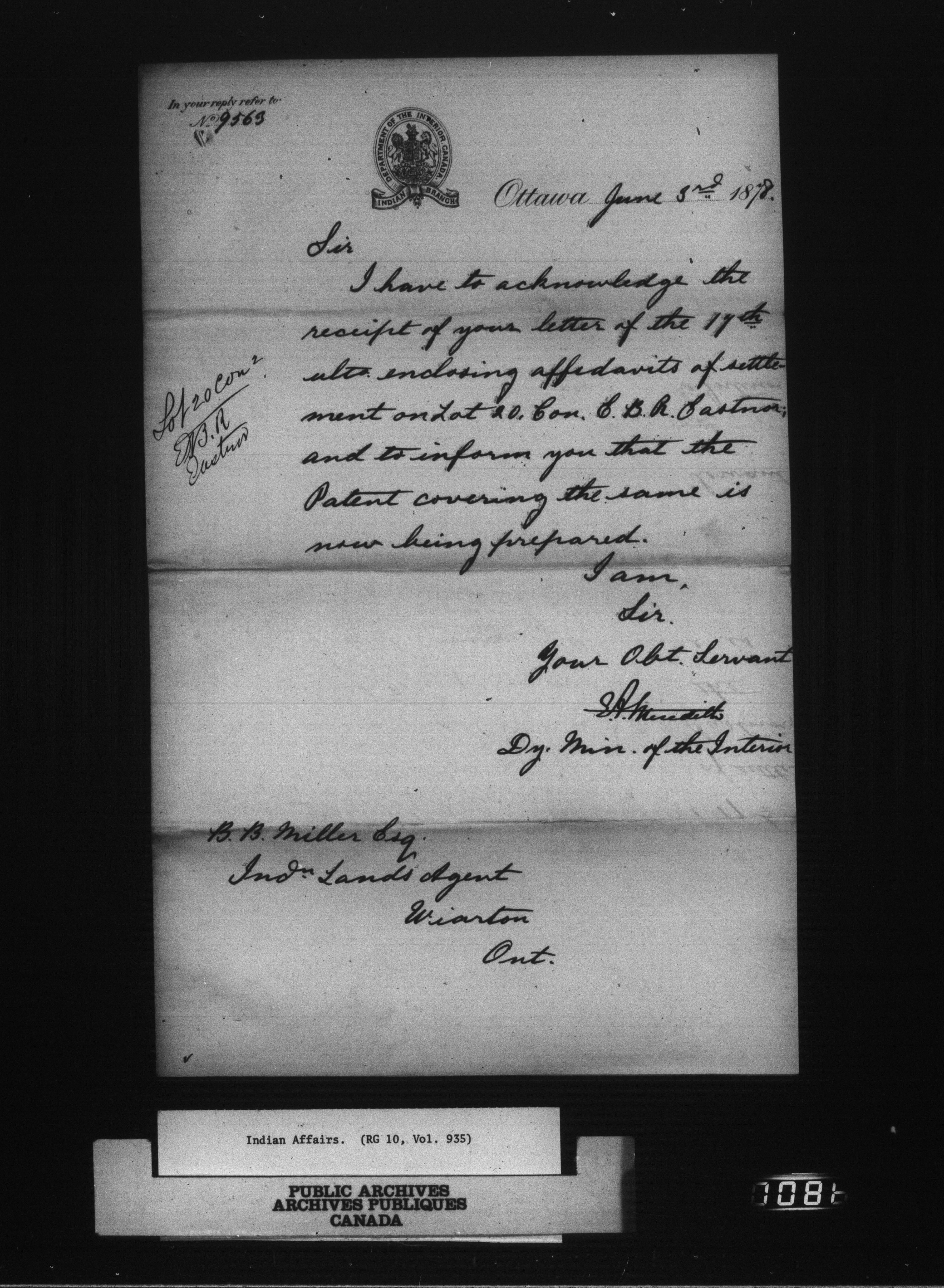 Department of Indian Affairs : Wiarton Land Office : C-14827