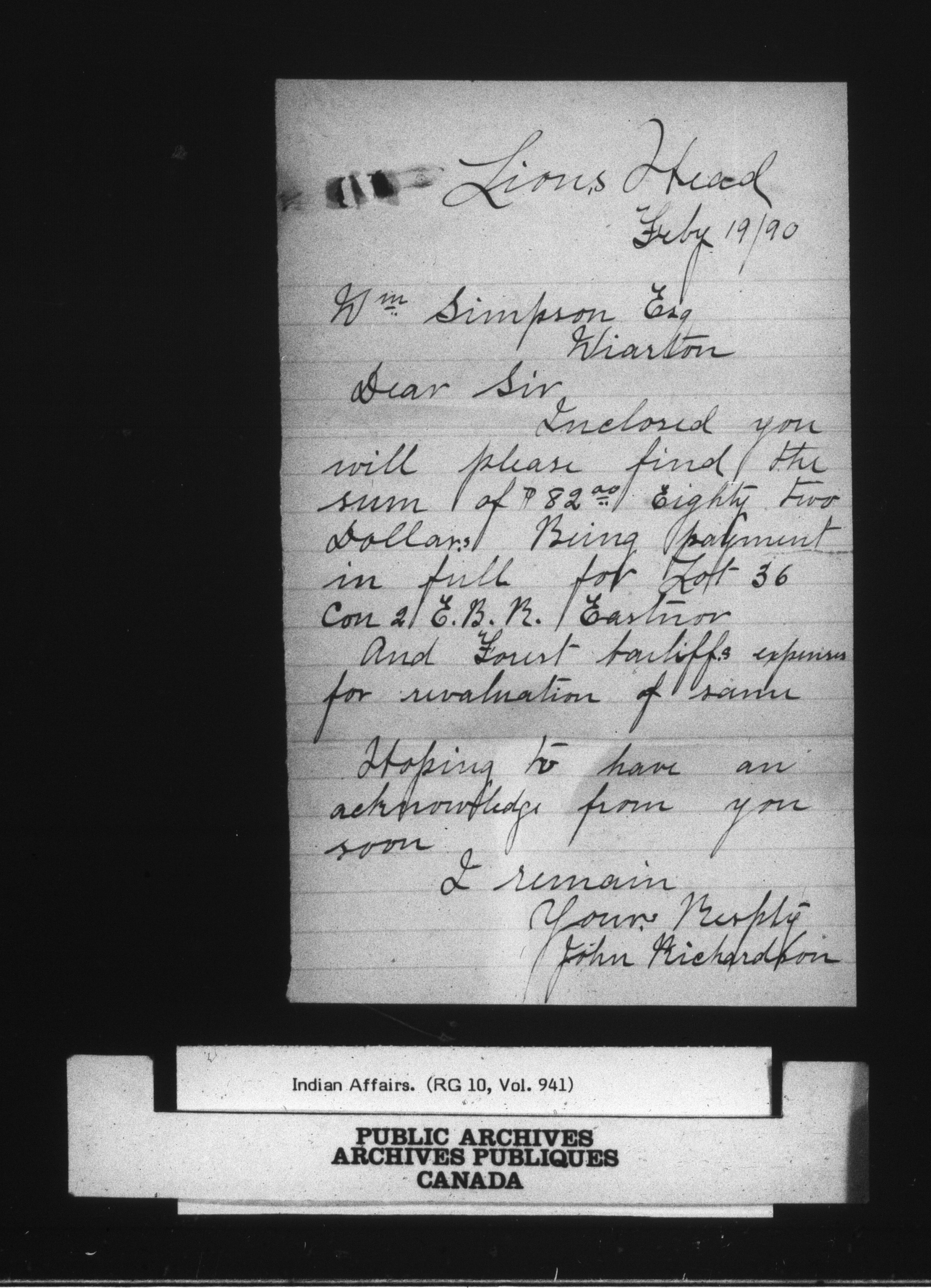 Indian Land Records Wiarton Land Office correspondence - 14829