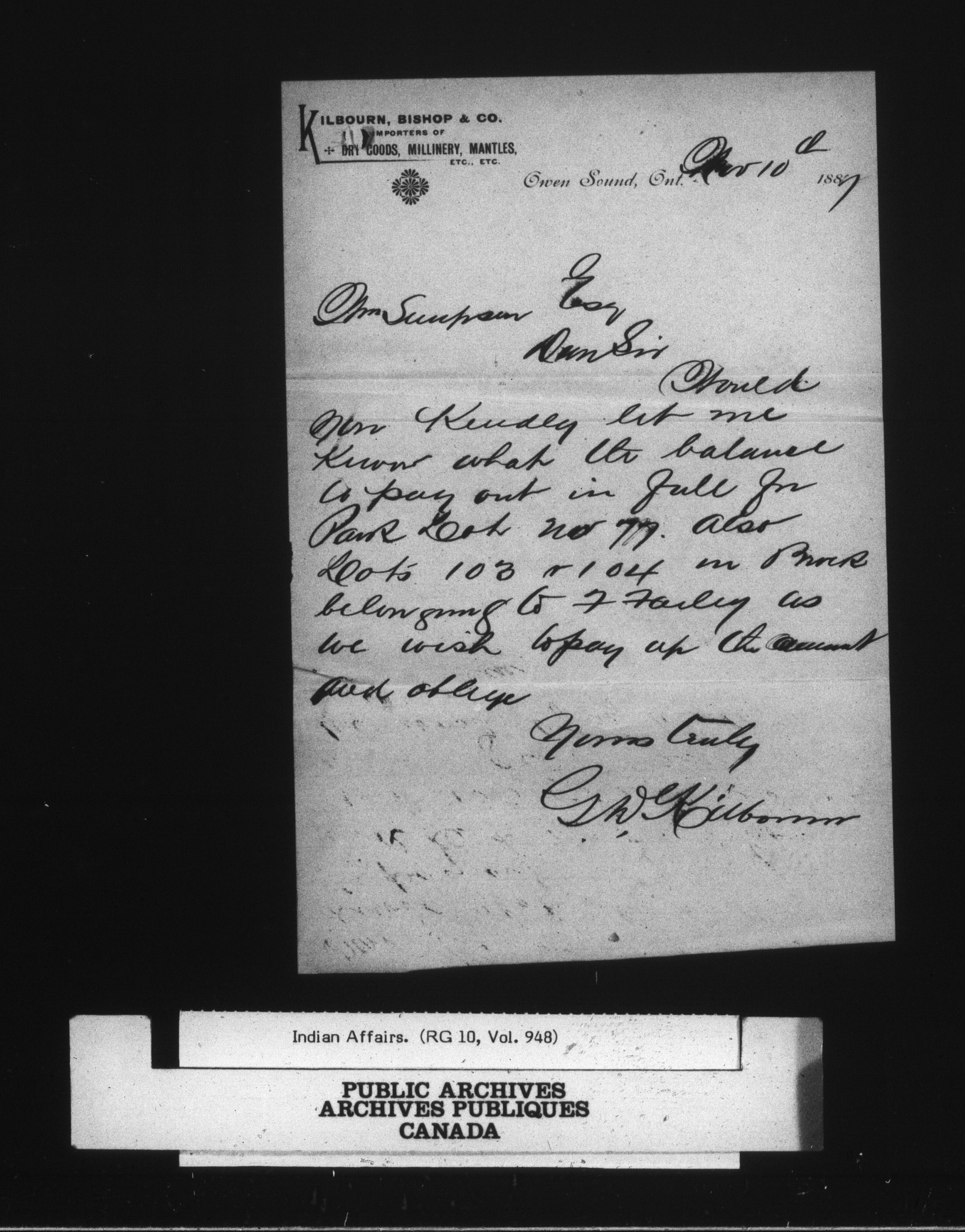 Indian Land Records Wiarton Land Office correspondence - 14829