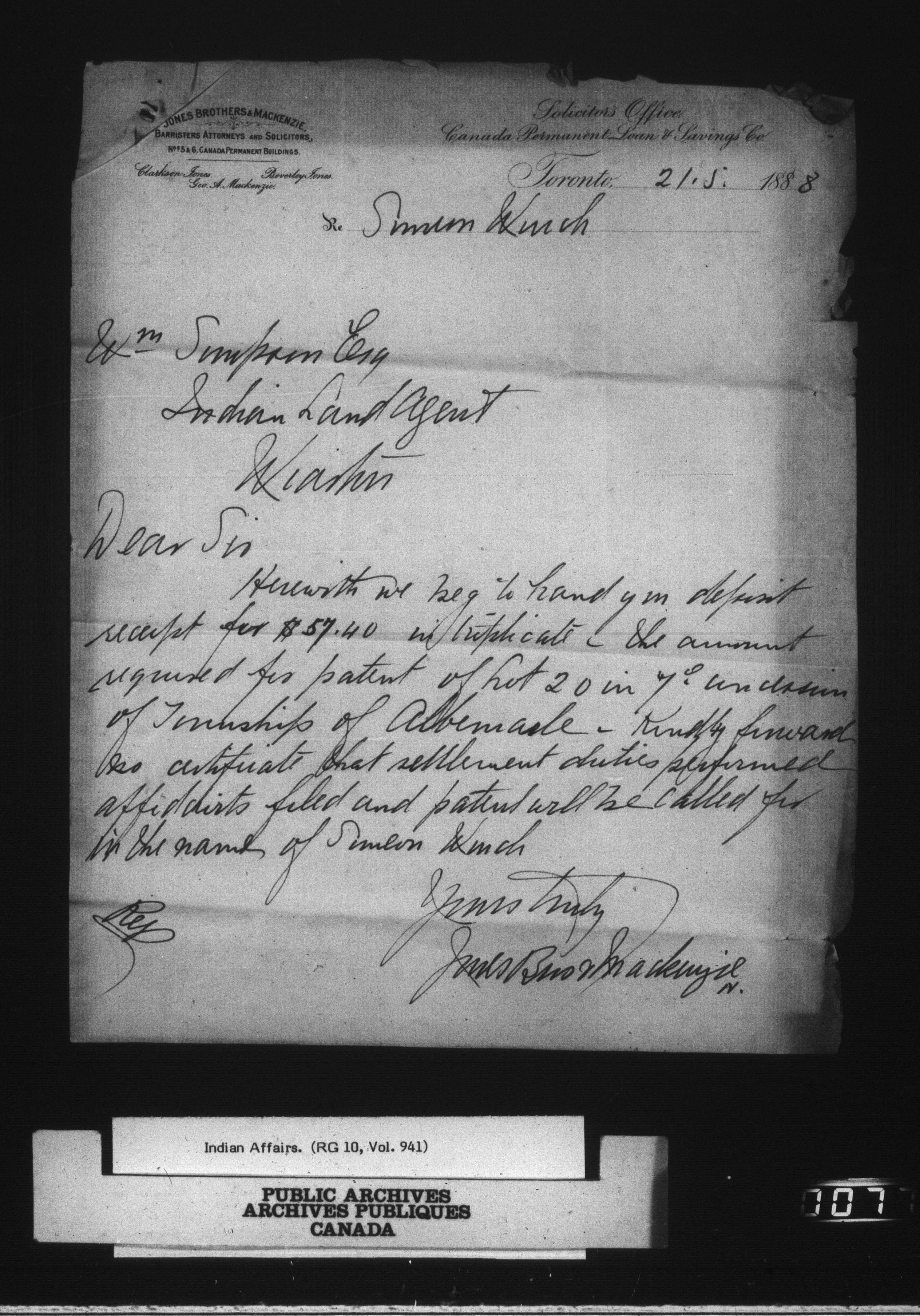 Indian Land Records Wiarton Land Office correspondence - 14829
