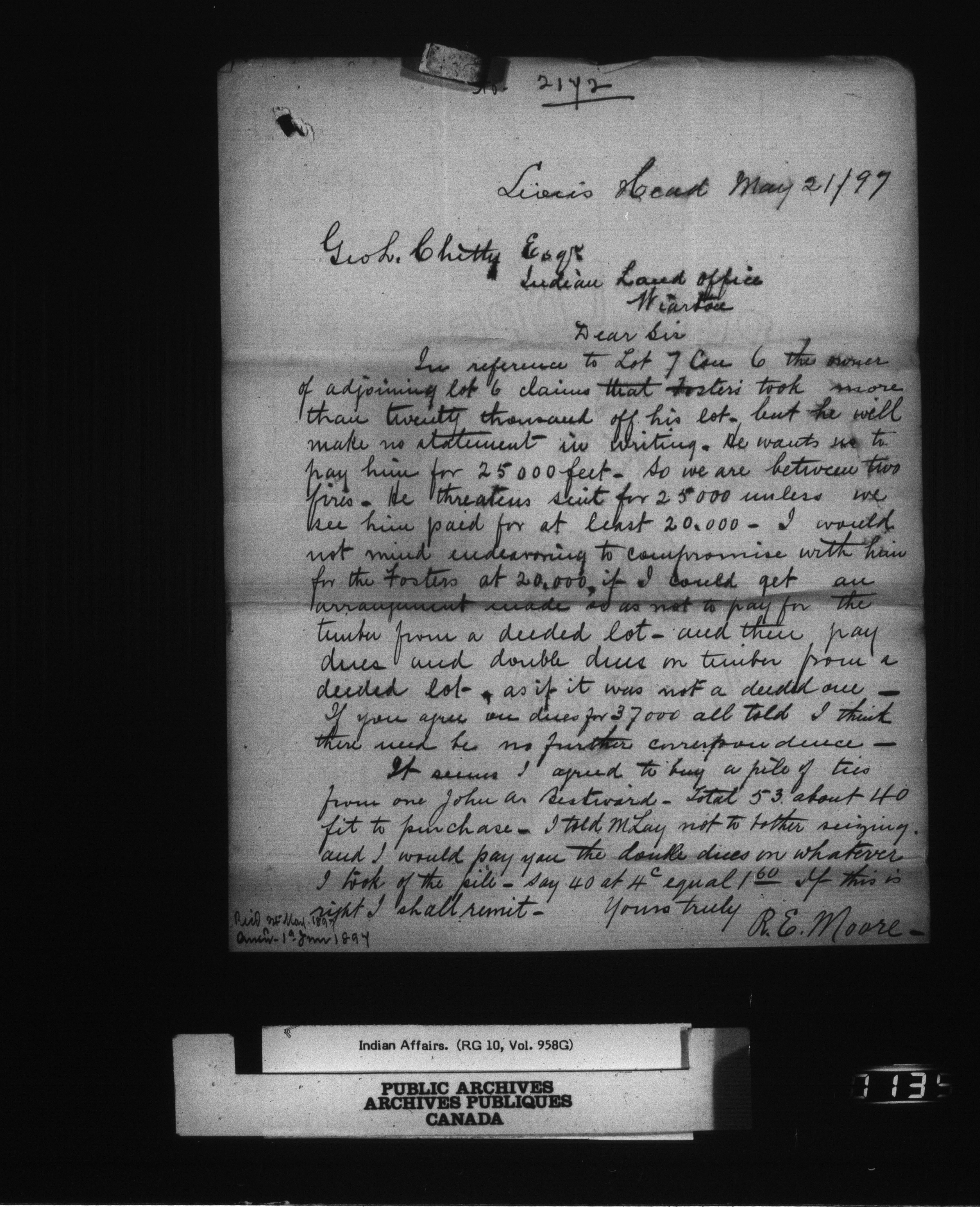 Indian Land Records Wiarton Land Office correspondence - 14831