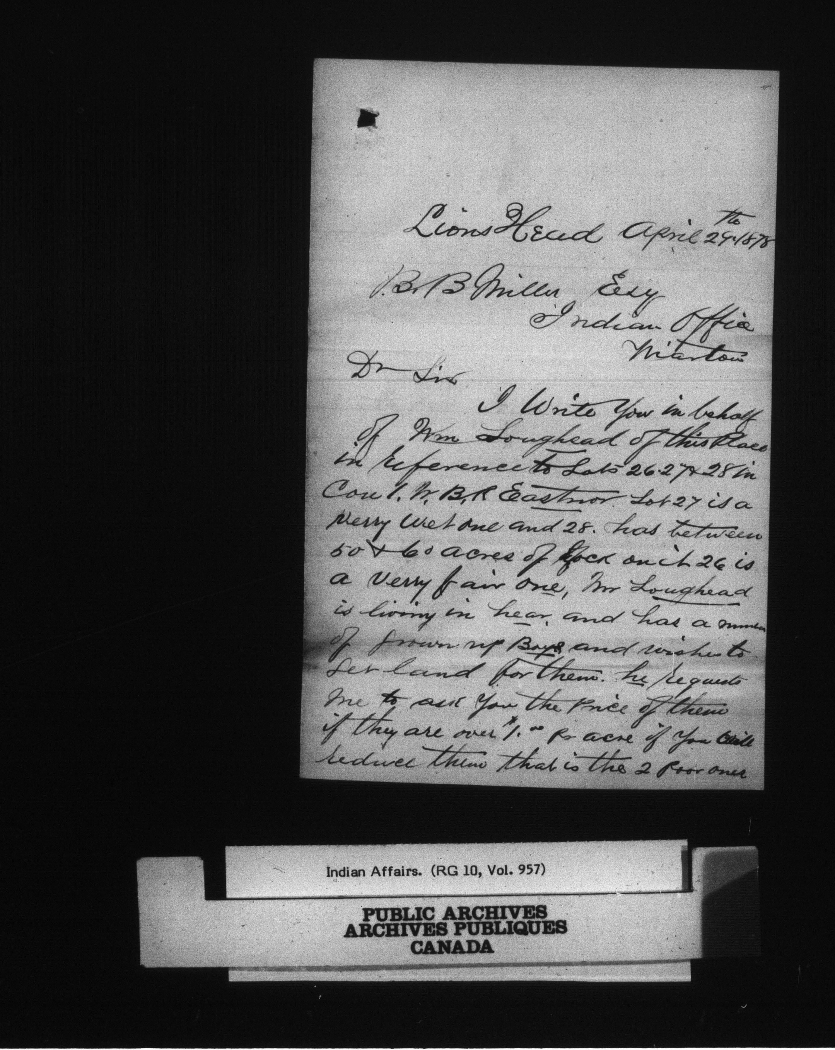 Indian Land Records Wiarton Land Office correspondence - 14831