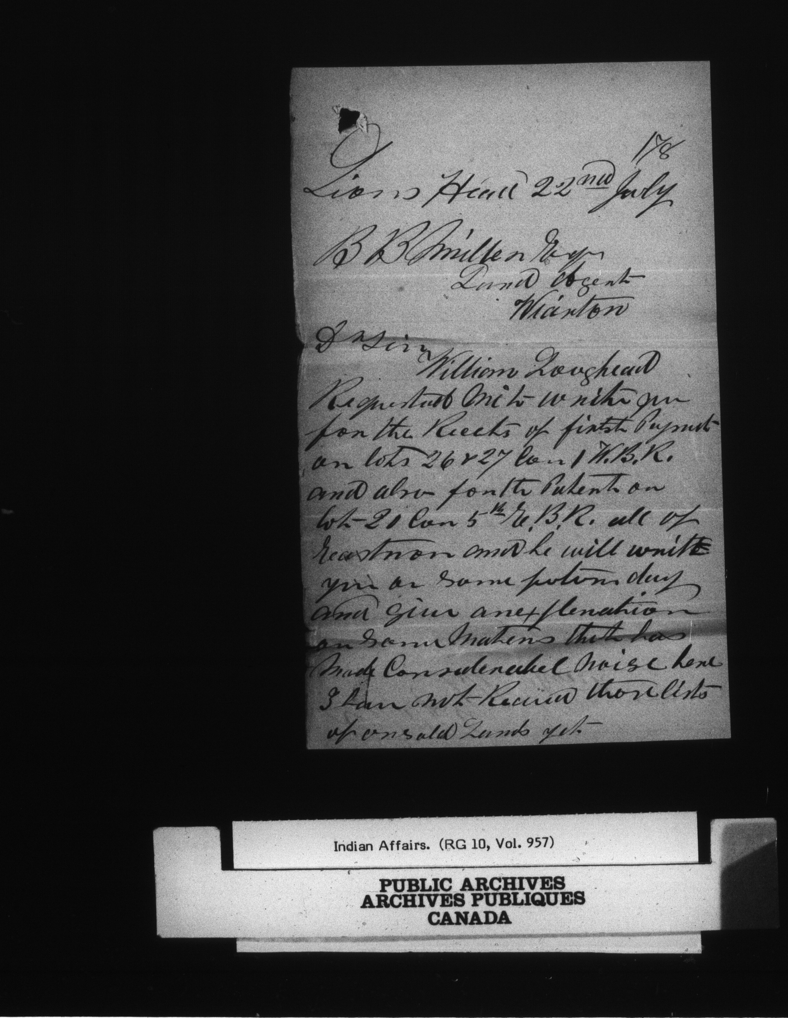 Department of Indian Affairs : Wiarton Land Office : C-14831