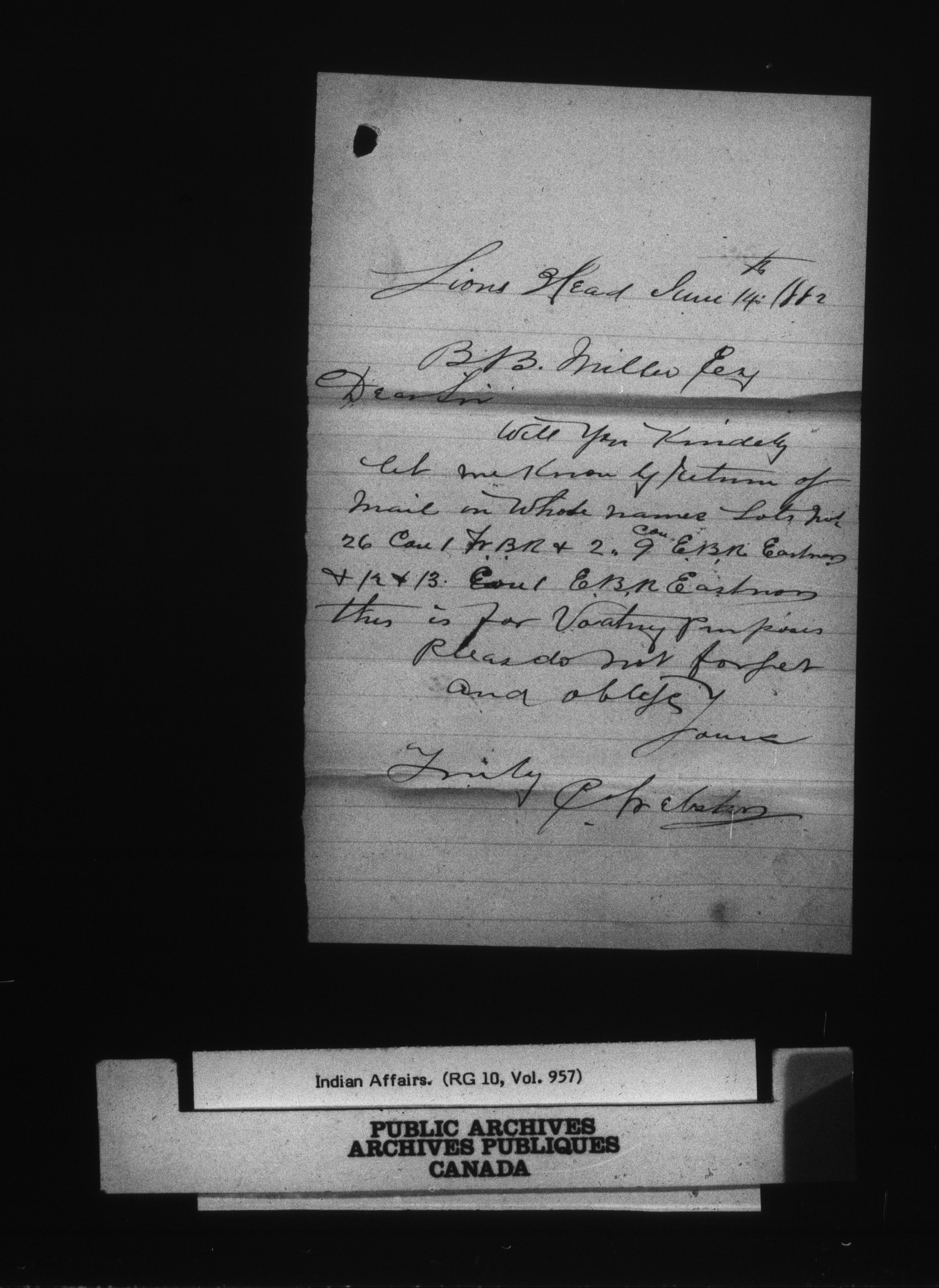 Indian Land Records Wiarton Land Office correspondence - 14831