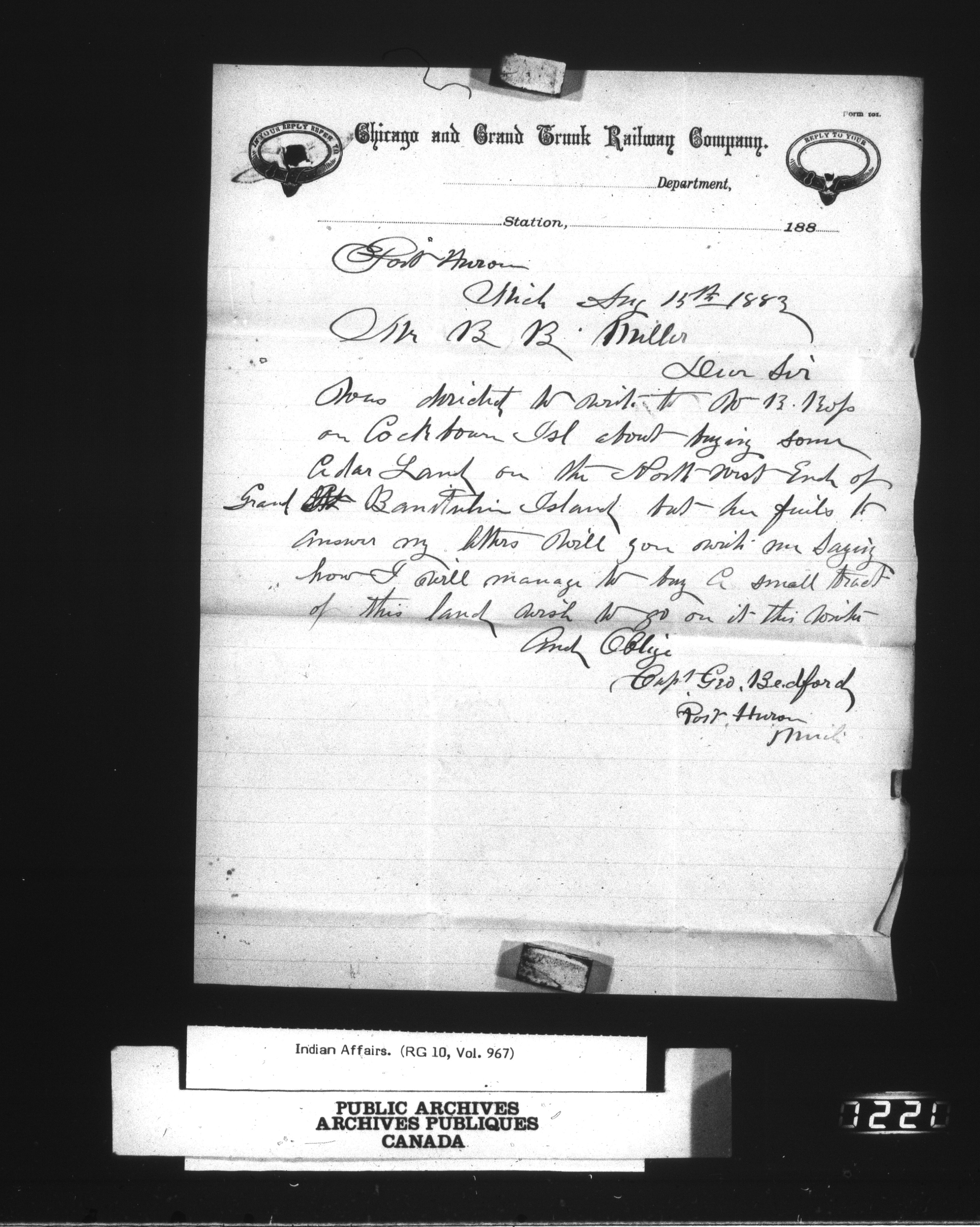 Indian Land Records Wiarton Land Office correspondence - 14833