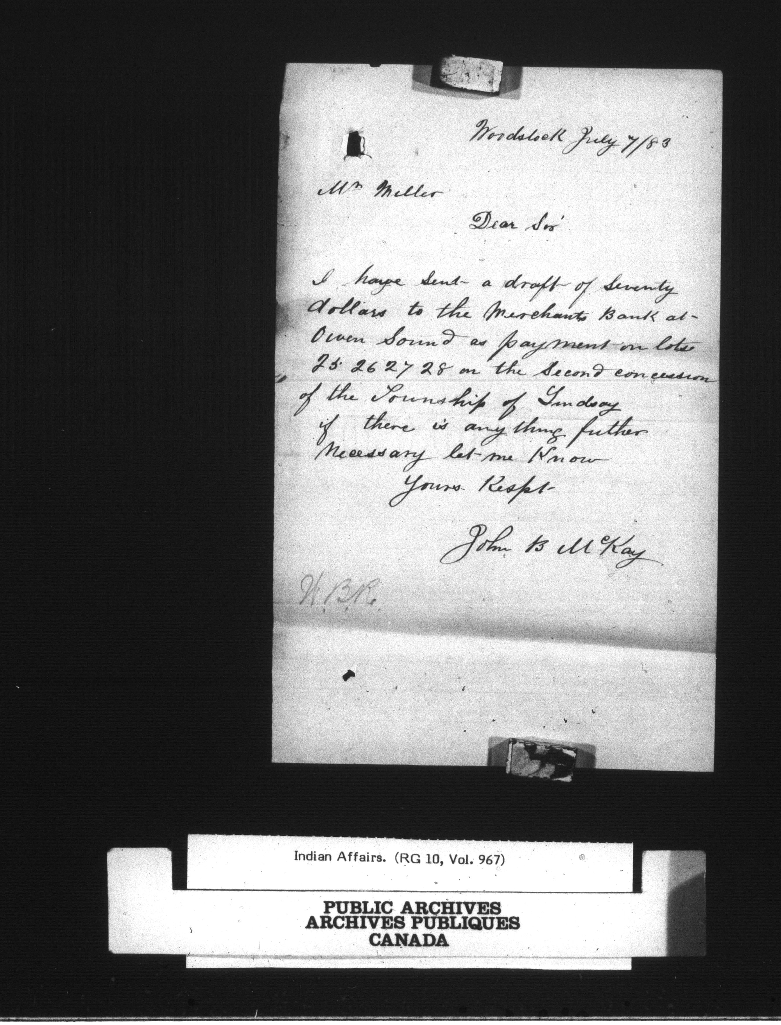 Indian Land Records Wiarton Land Office correspondence - 14833