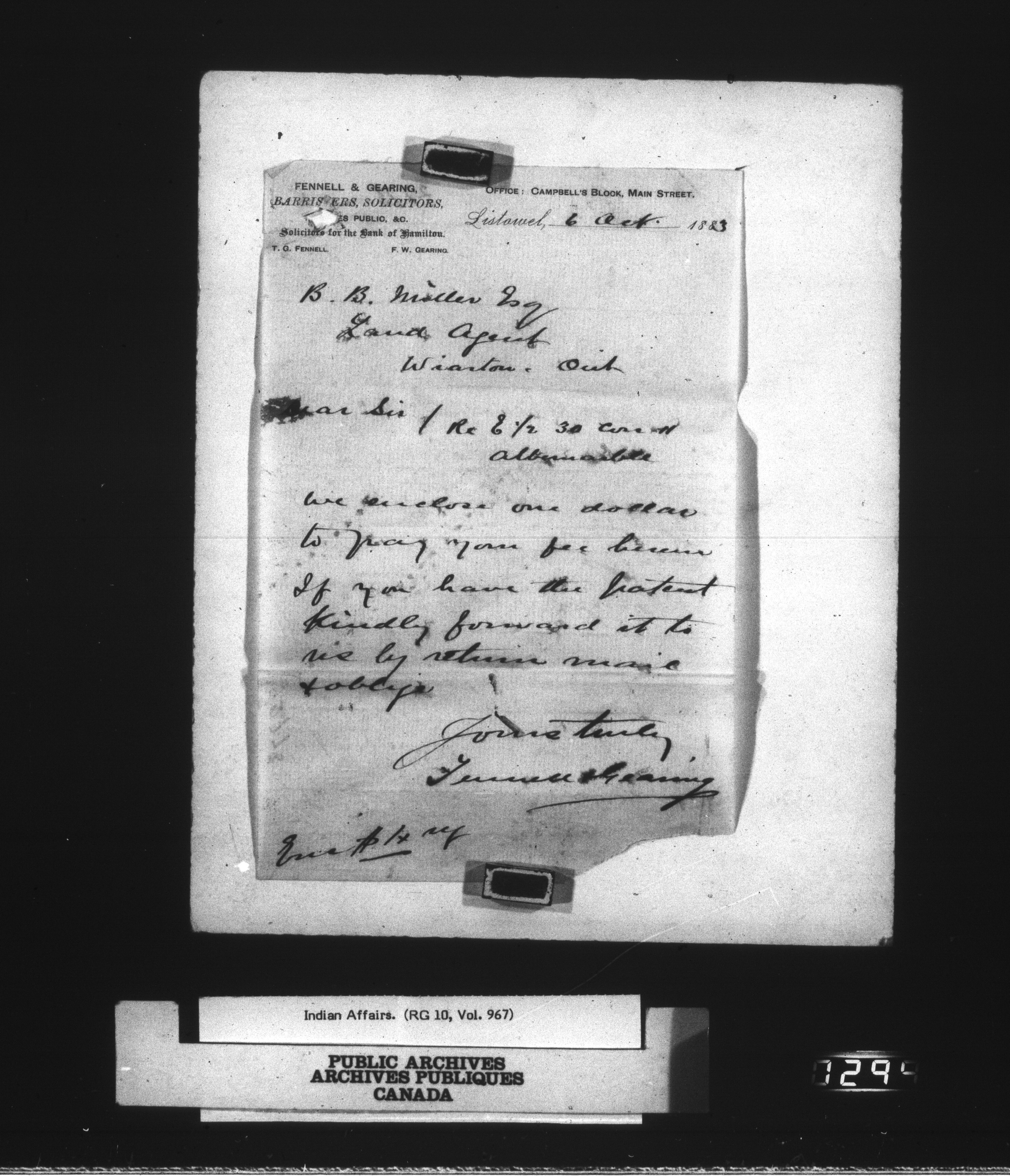 Indian Land Records Wiarton Land Office correspondence - 14834