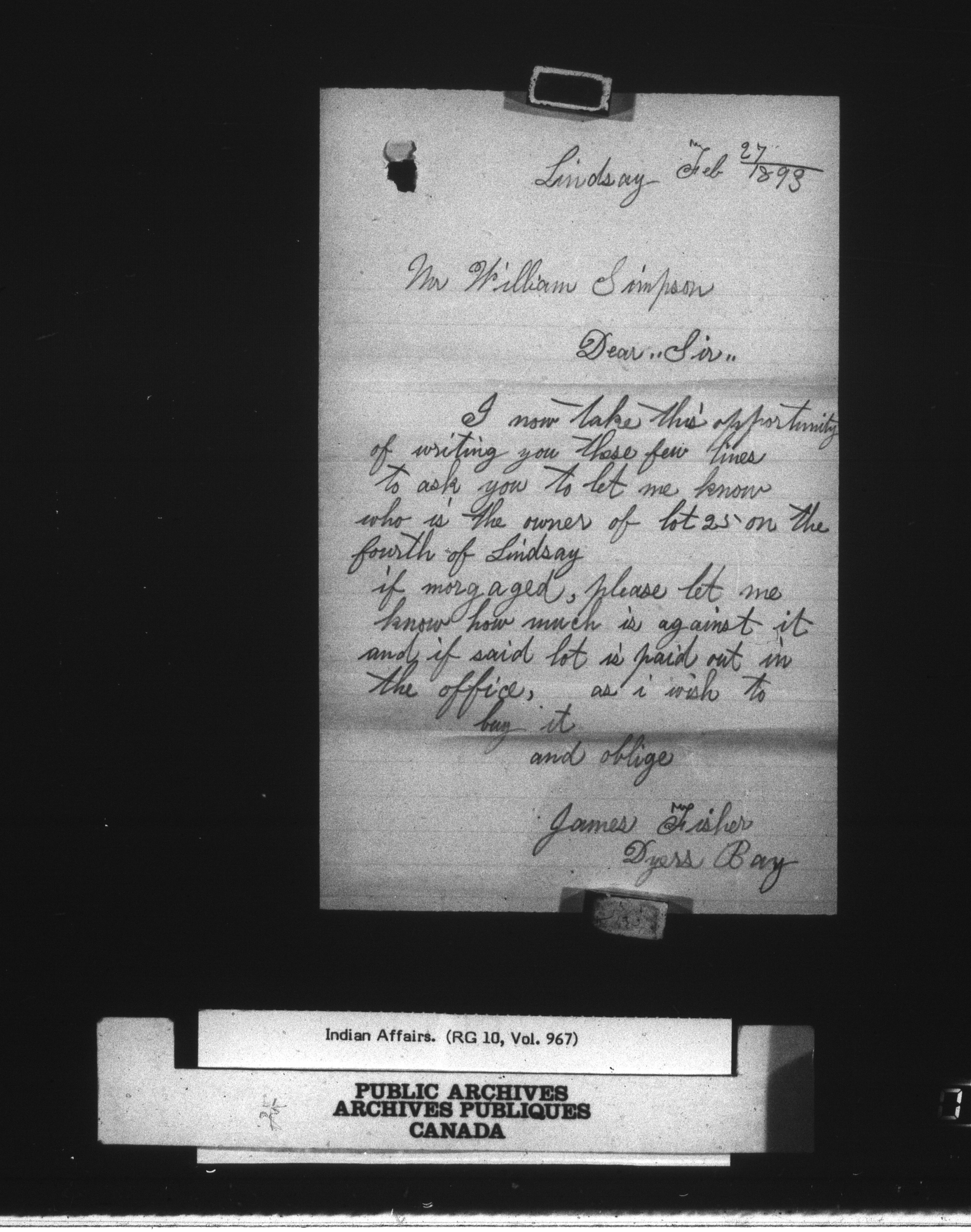 Indian Land Records Wiarton Land Office correspondence - 14834