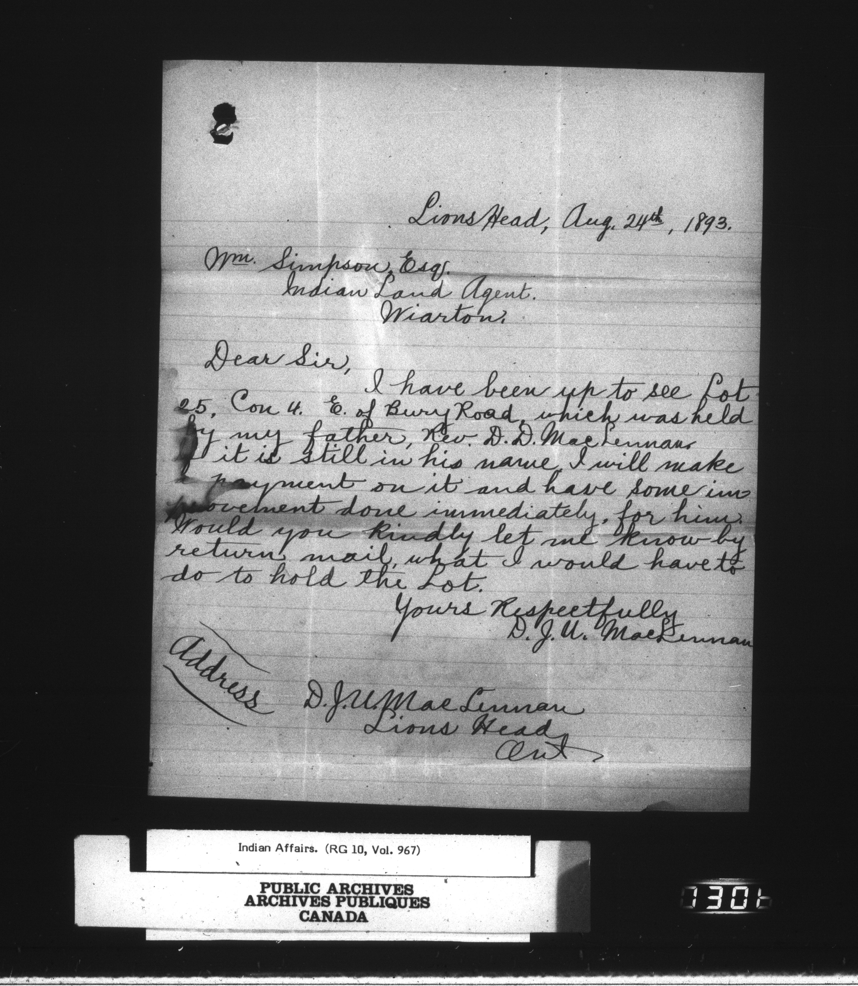 Indian Land Records Wiarton Land Office correspondence - 14834