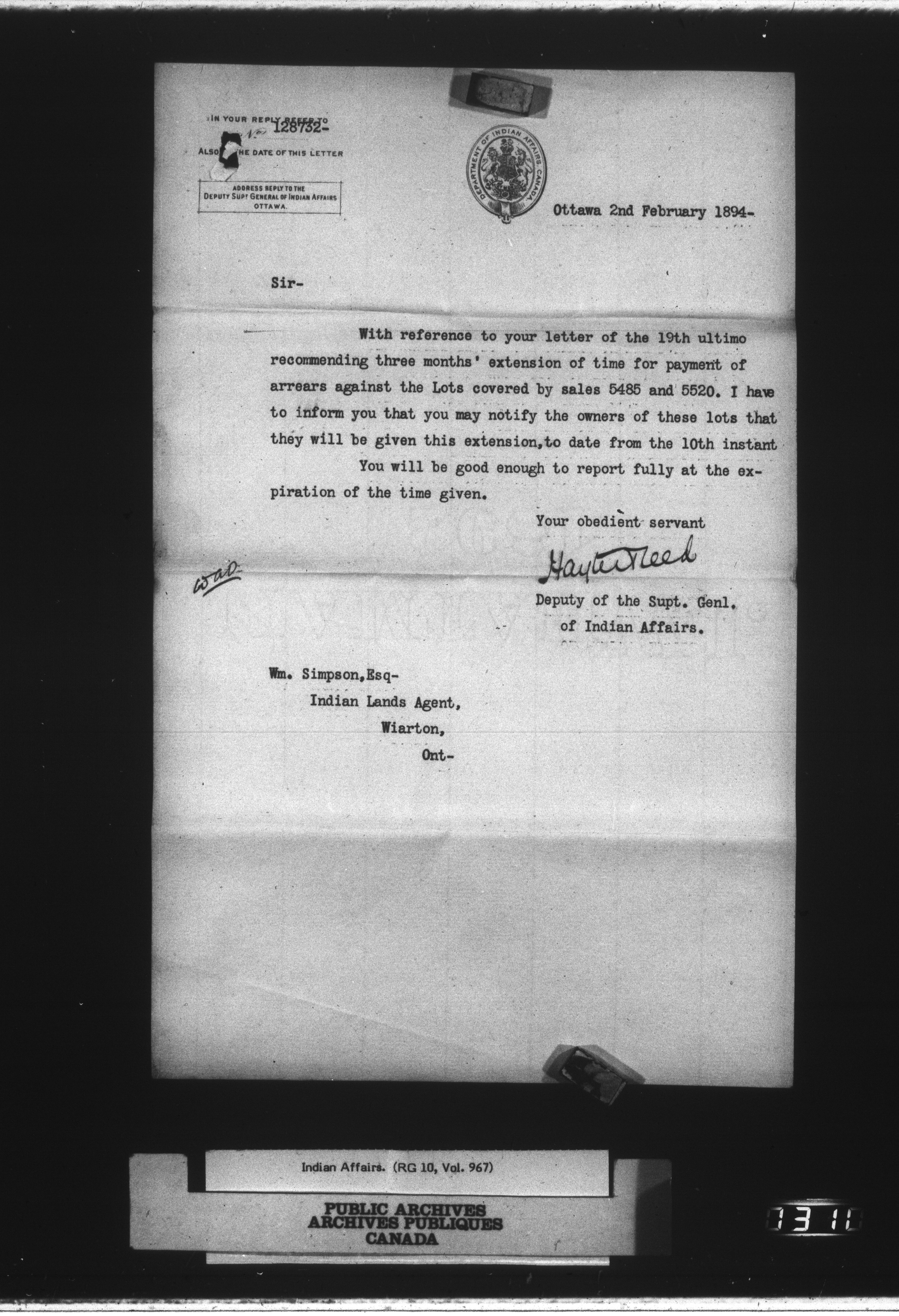 Indian Land Records Wiarton Land Office correspondence - 14834