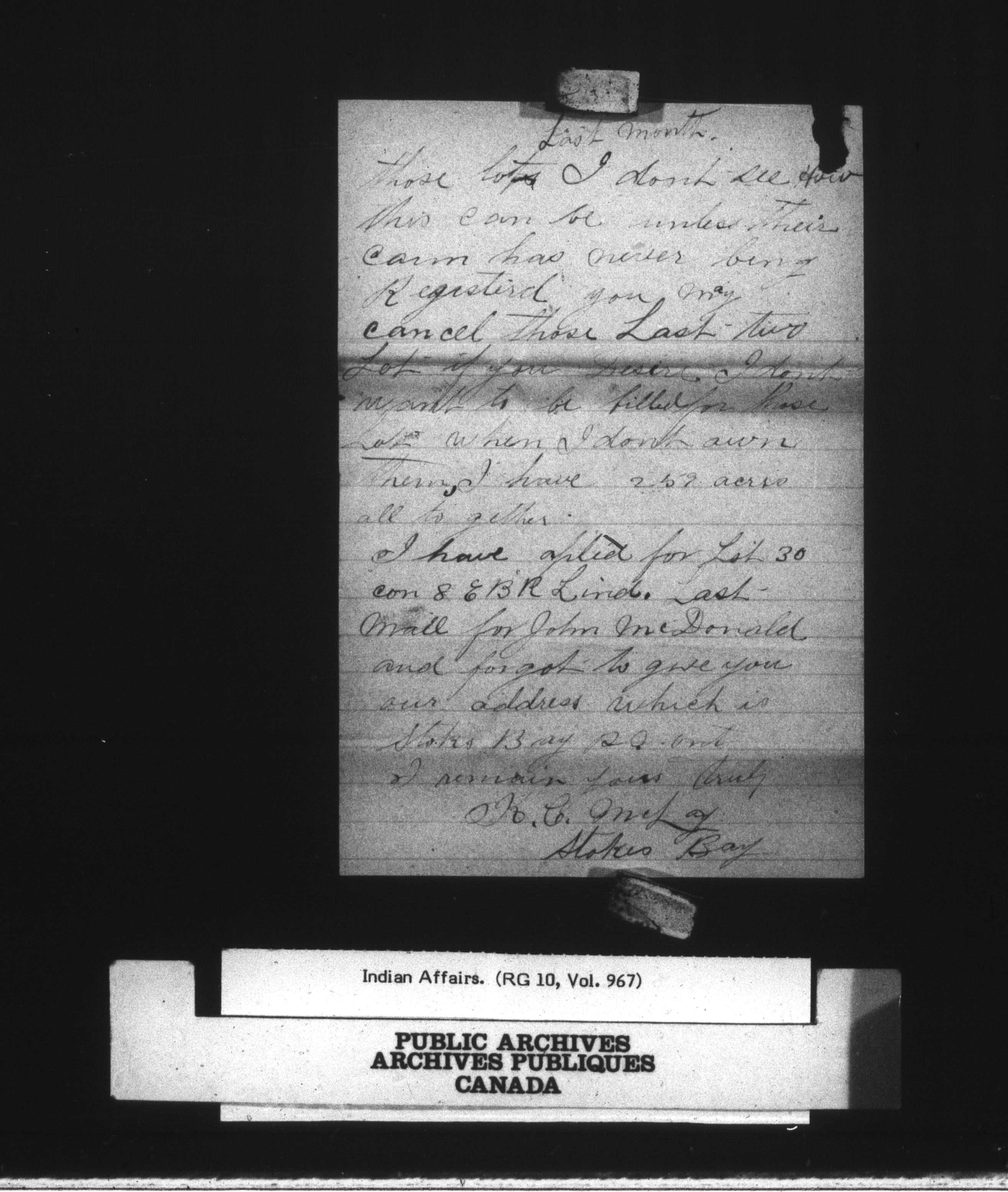 Indian Land Records Wiarton Land Office correspondence - 14834