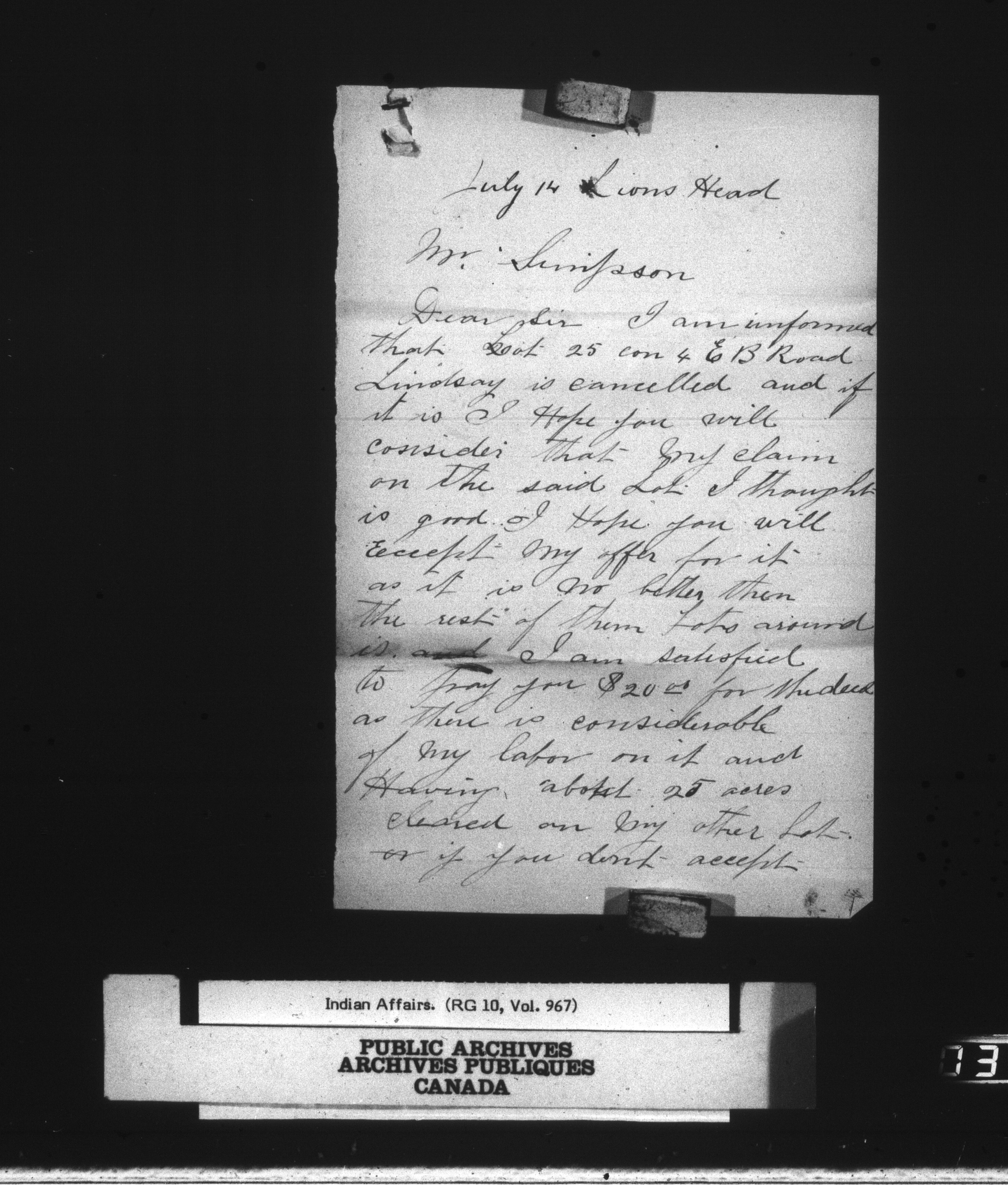Department of Indian Affairs : Wiarton Land Office : C-14834