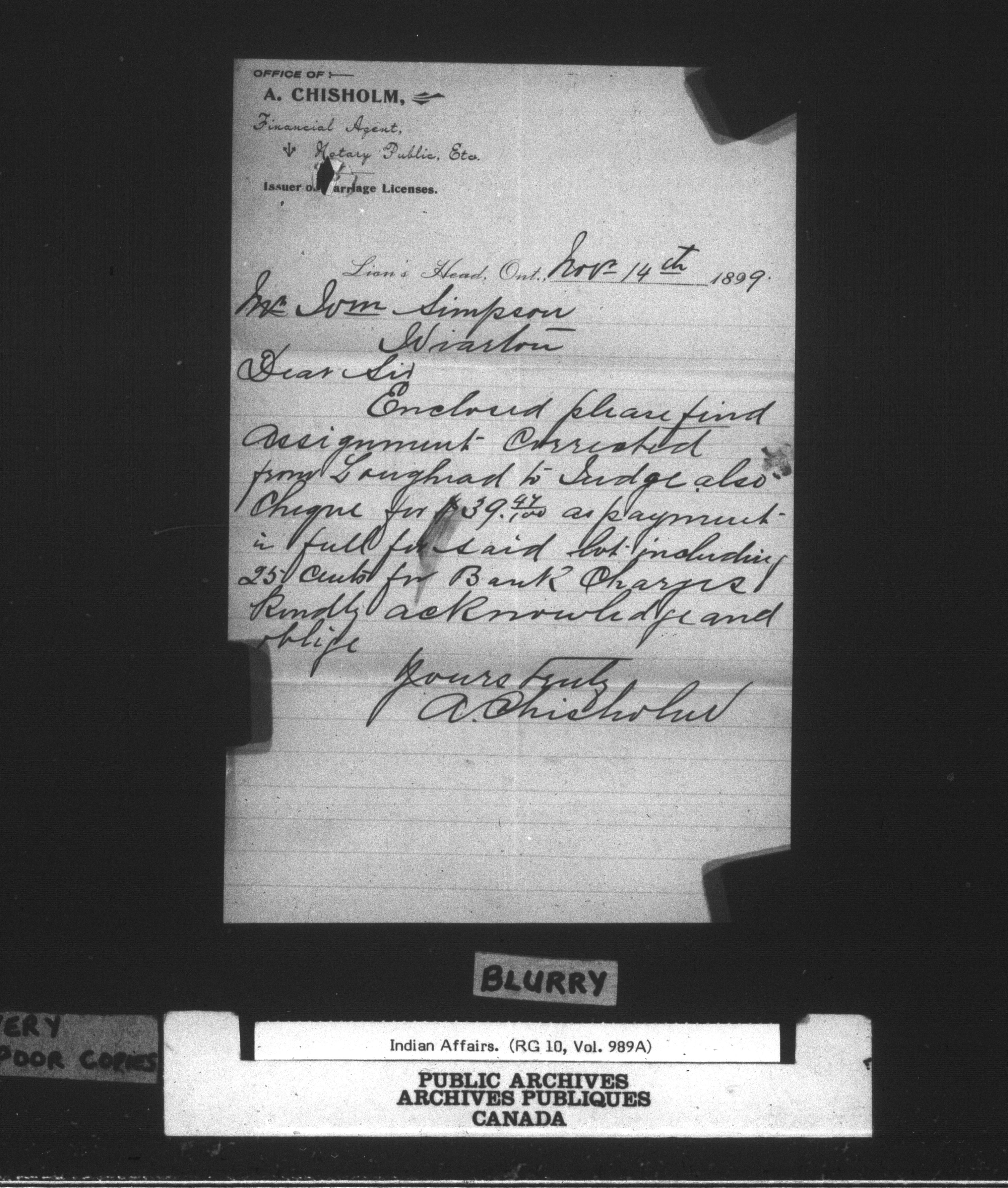 Department of Indian Affairs : Wiarton Land Office : C-14837