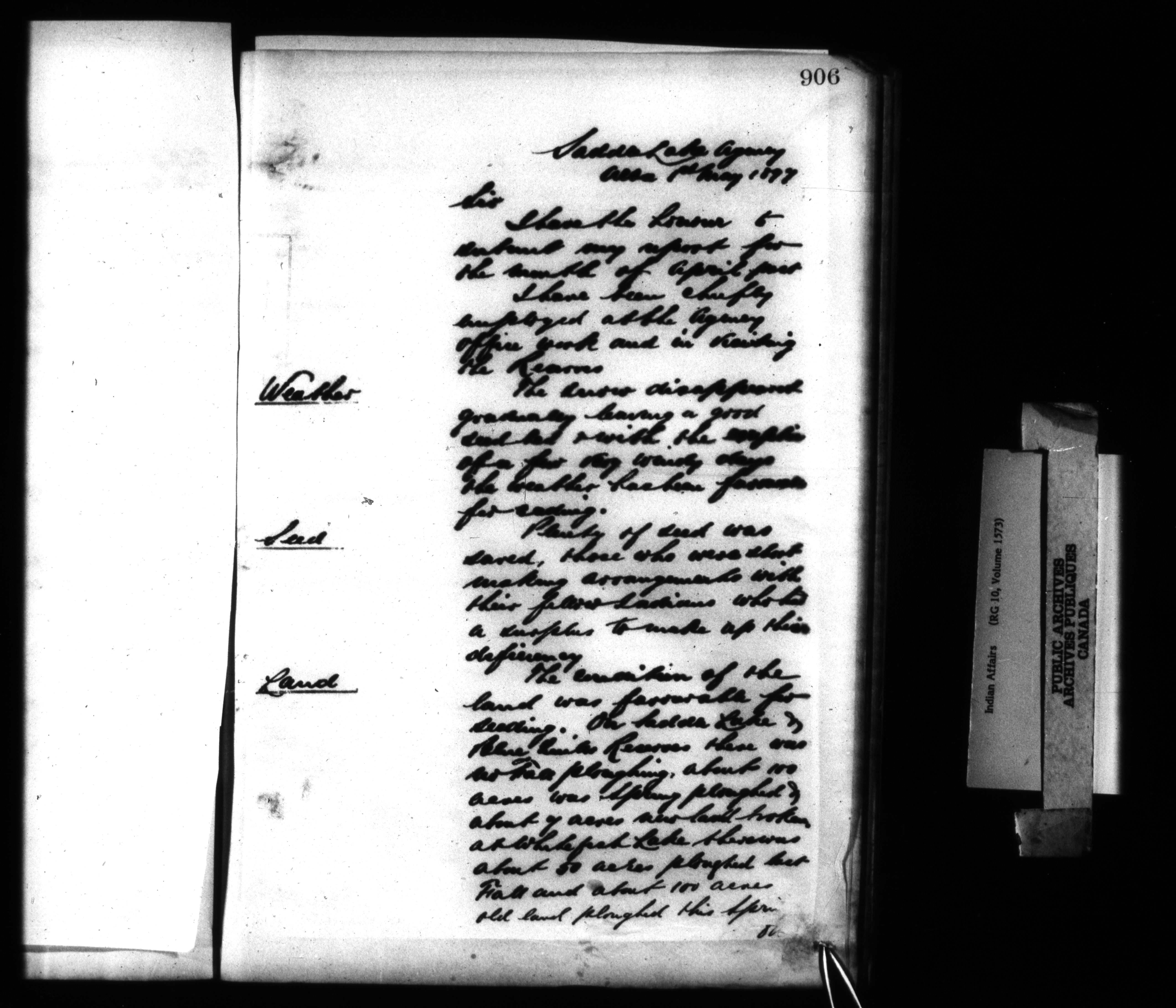 Department of Indian Affairs : Saddle Lake Agency - 14851