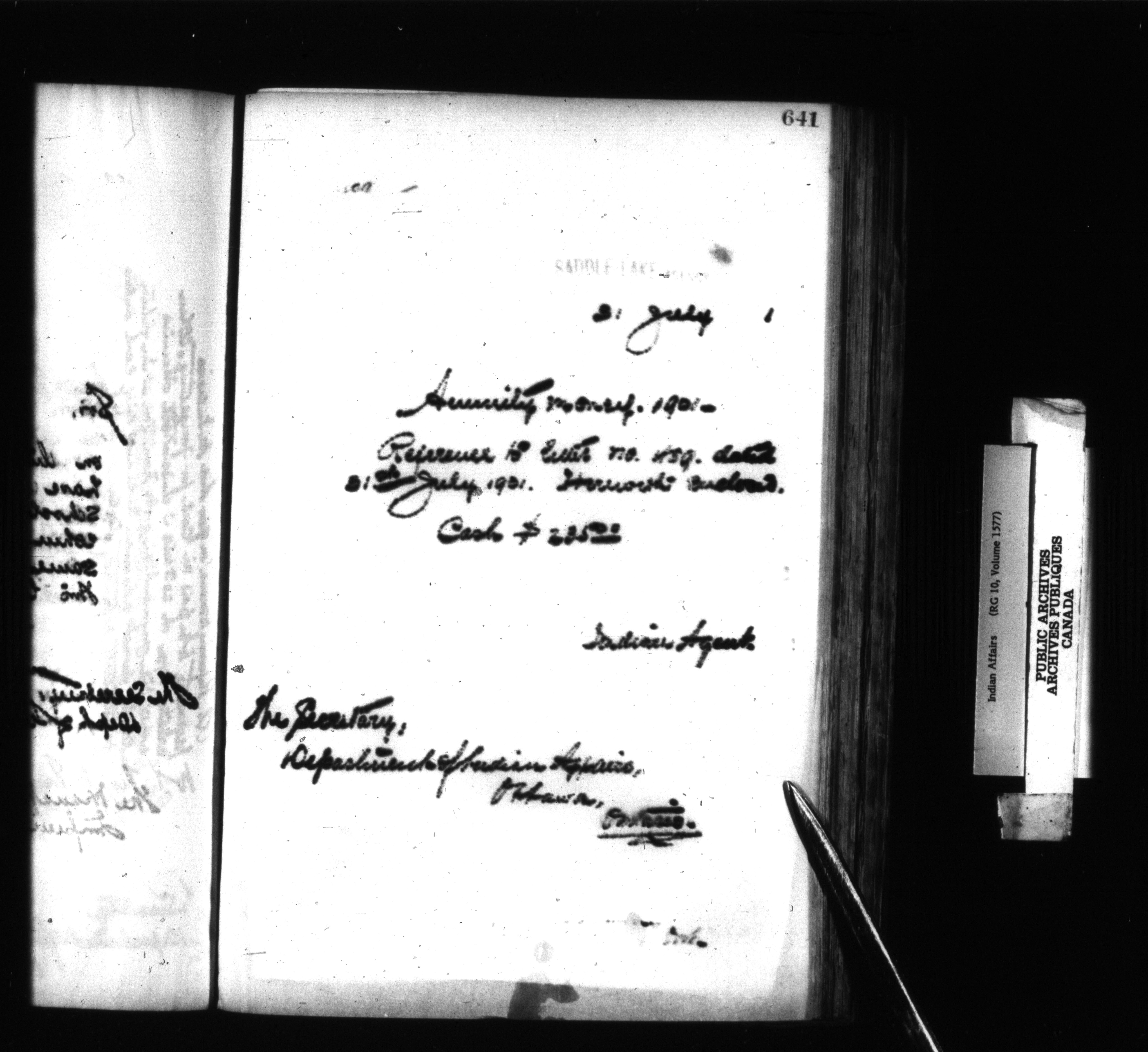 Department of Indian Affairs : Saddle Lake Agency - 14852