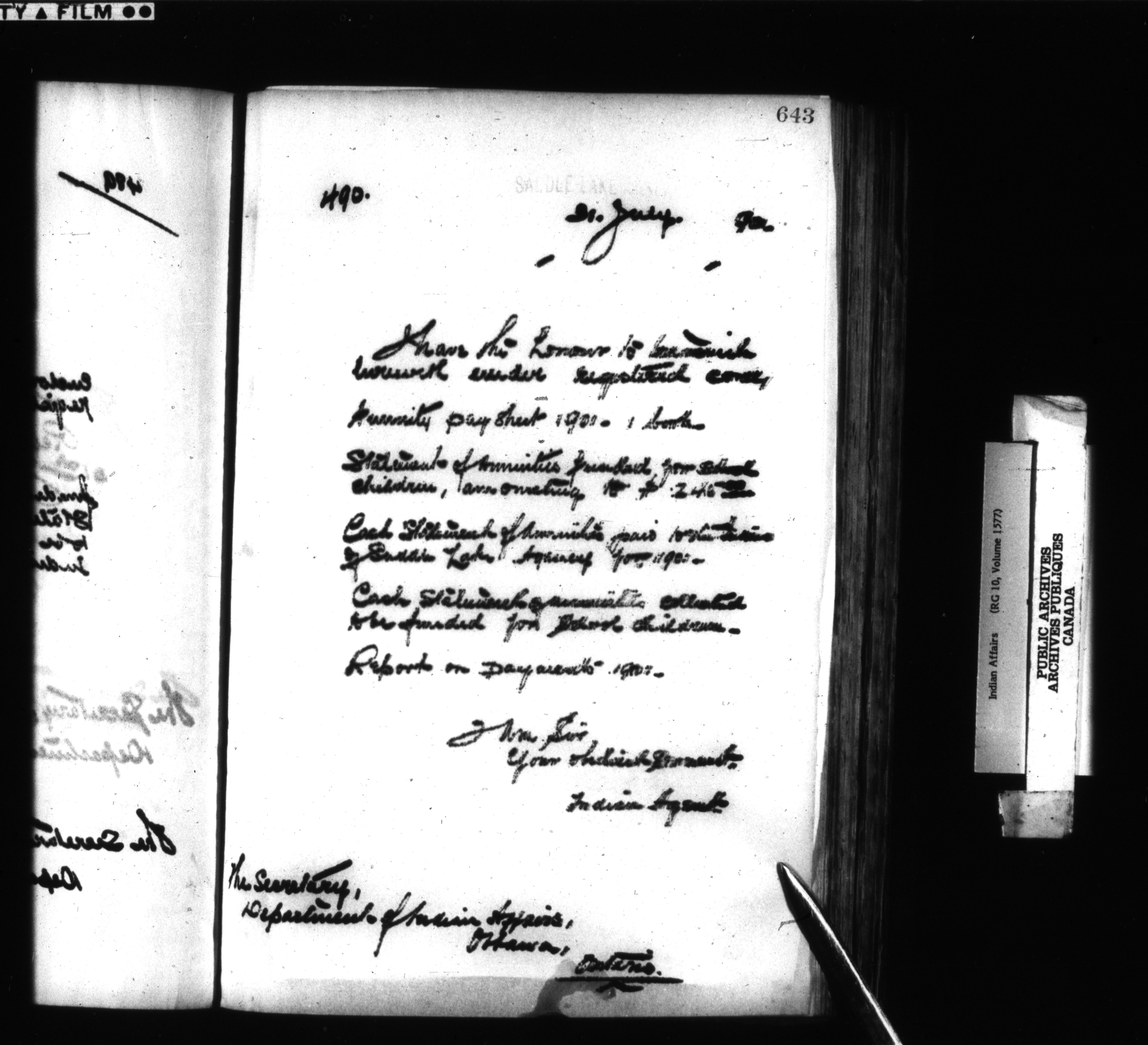 Department of Indian Affairs : Saddle Lake Agency - 14852