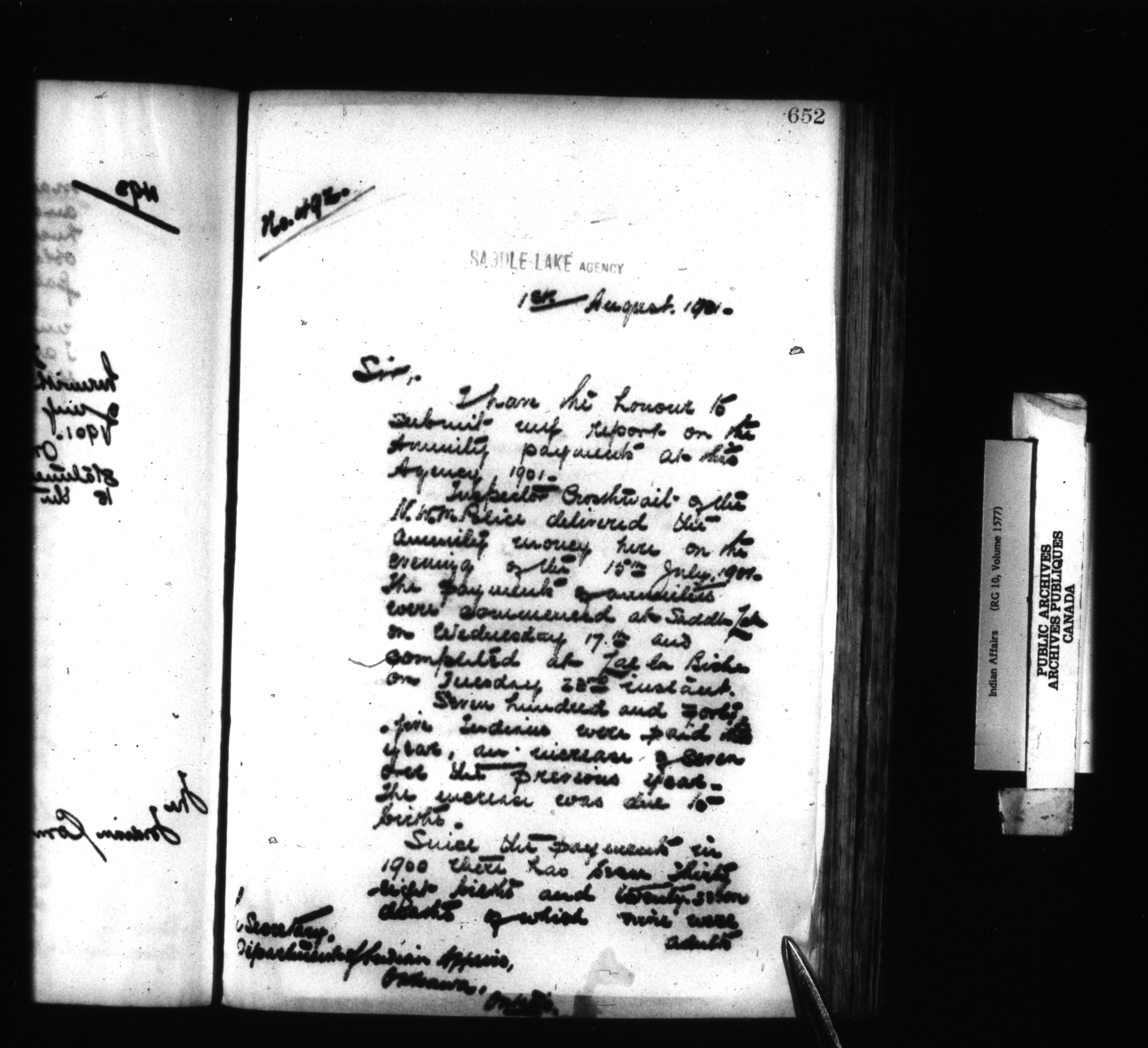 Department of Indian Affairs : Saddle Lake Agency - 14852
