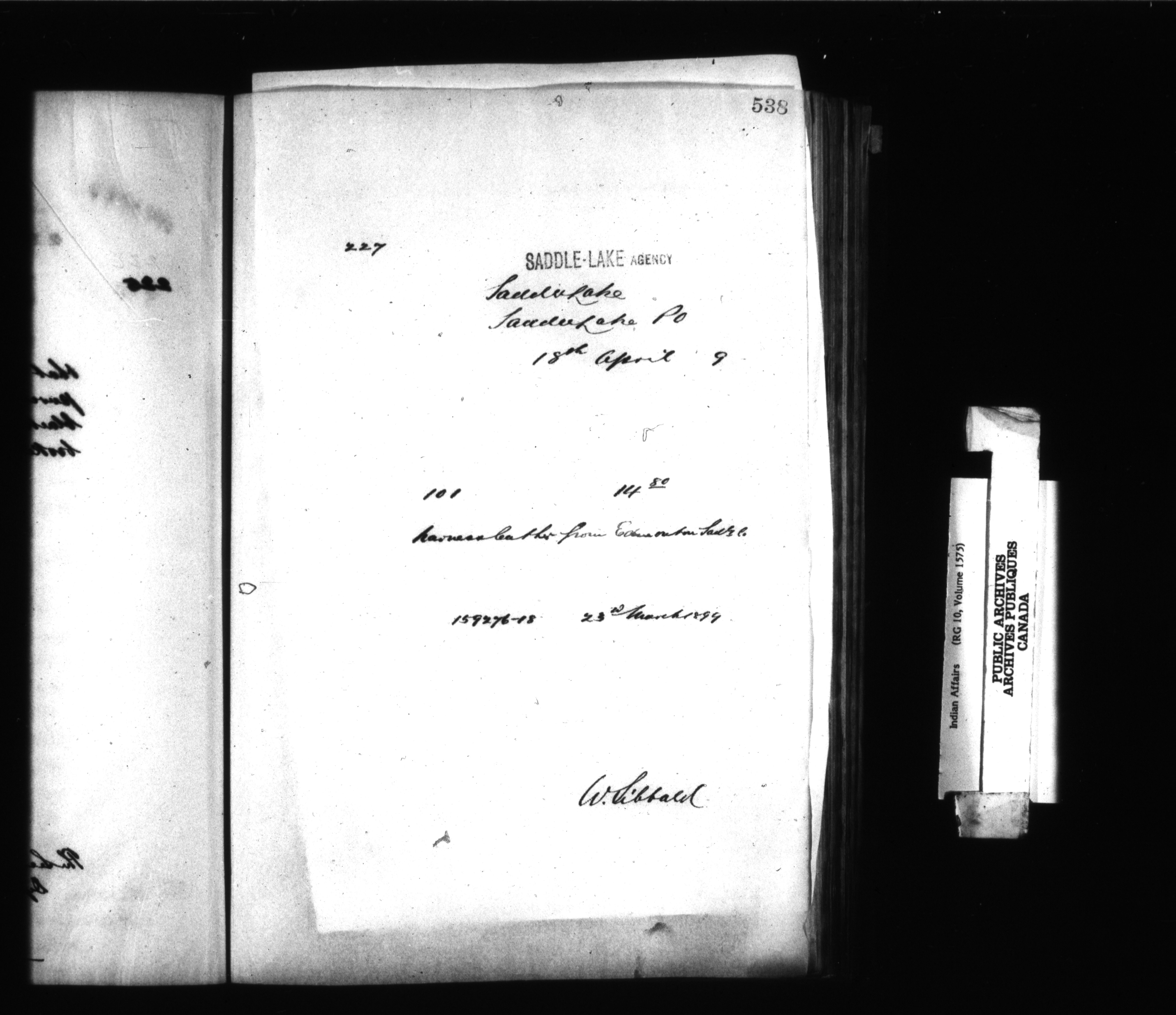 Department of Indian Affairs : Saddle Lake Agency - 14852