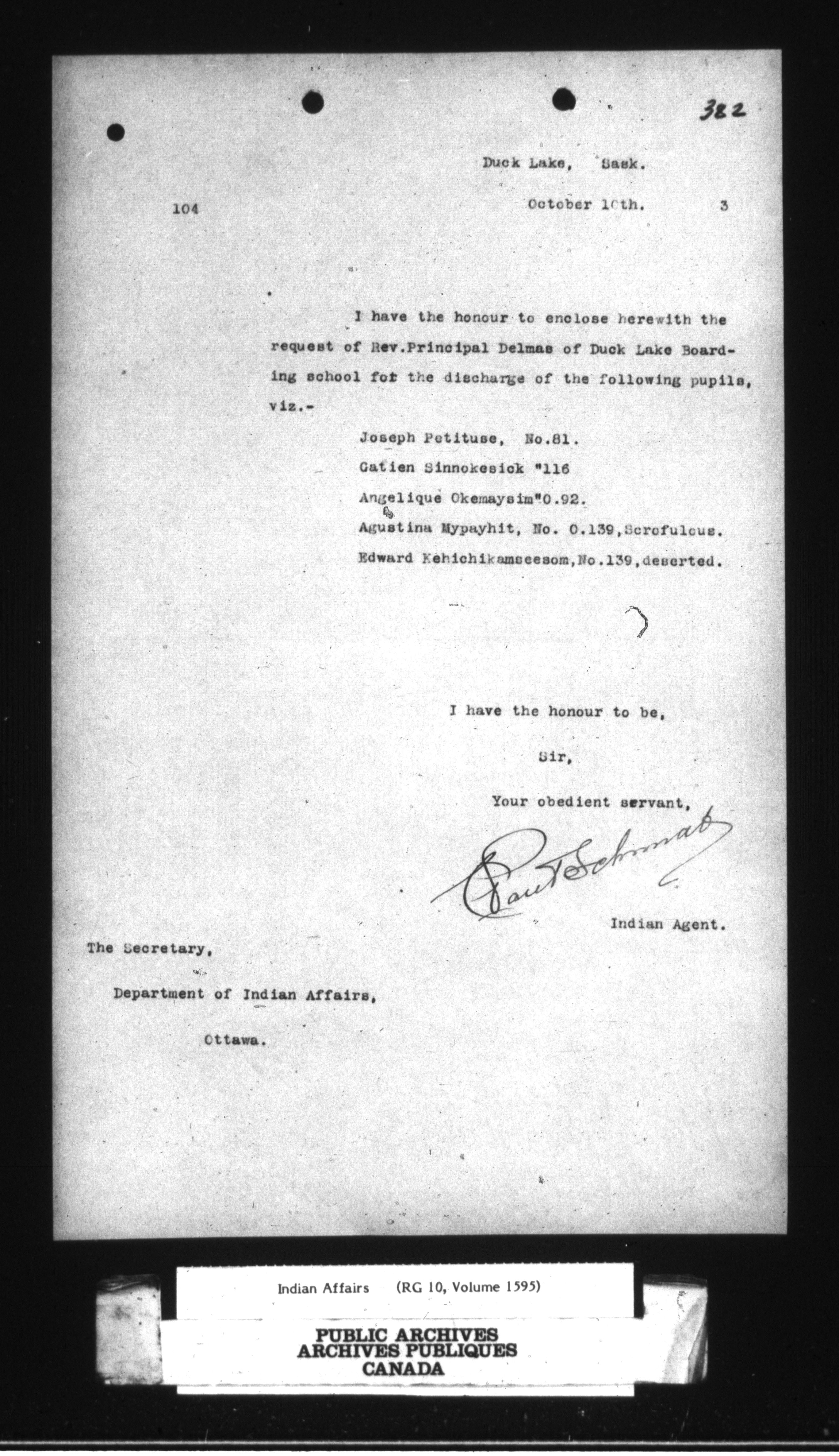 Department of Indian Affairs : Duck Lake Agency - 14858