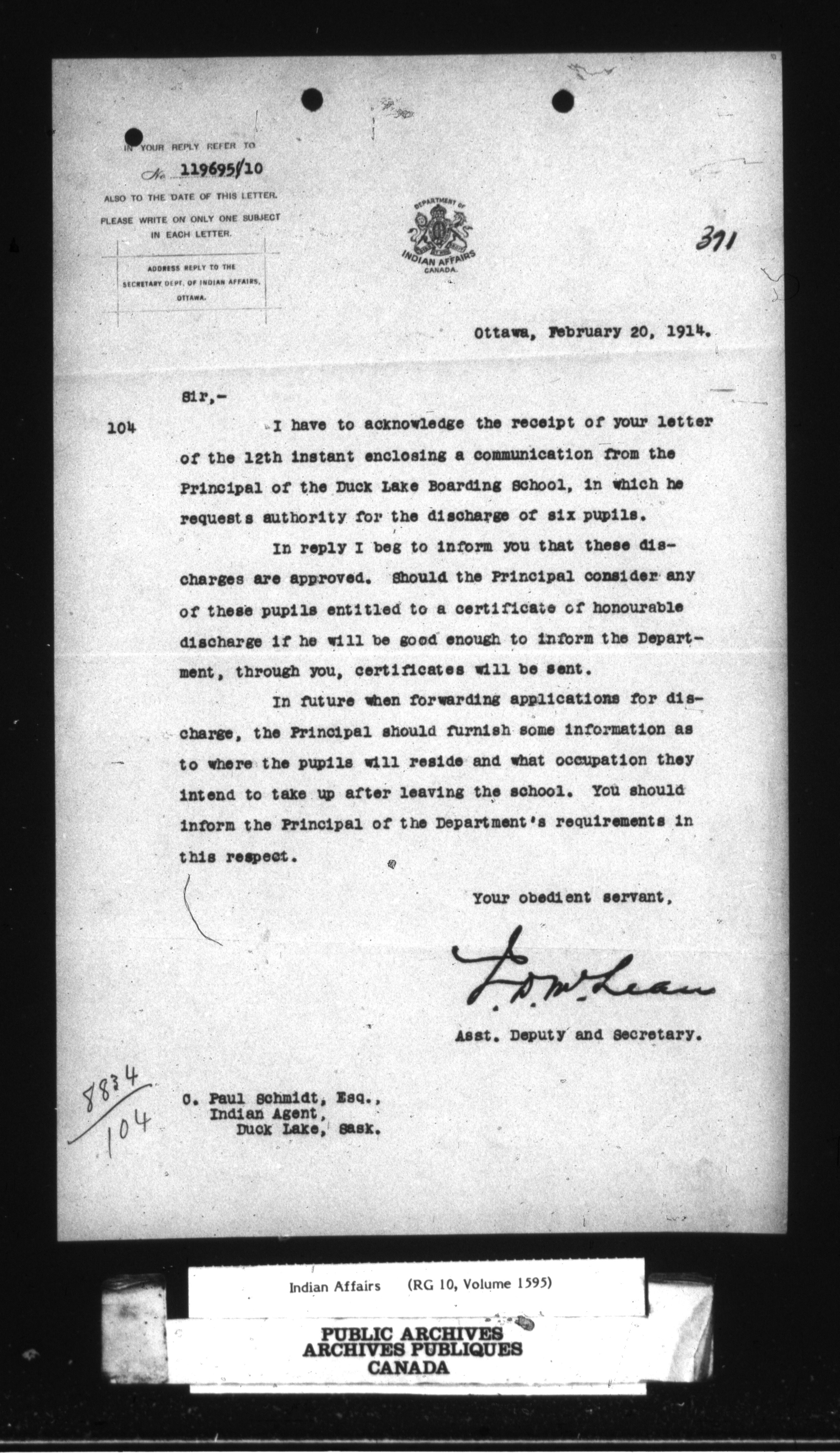 Department of Indian Affairs : Duck Lake Agency - 14858