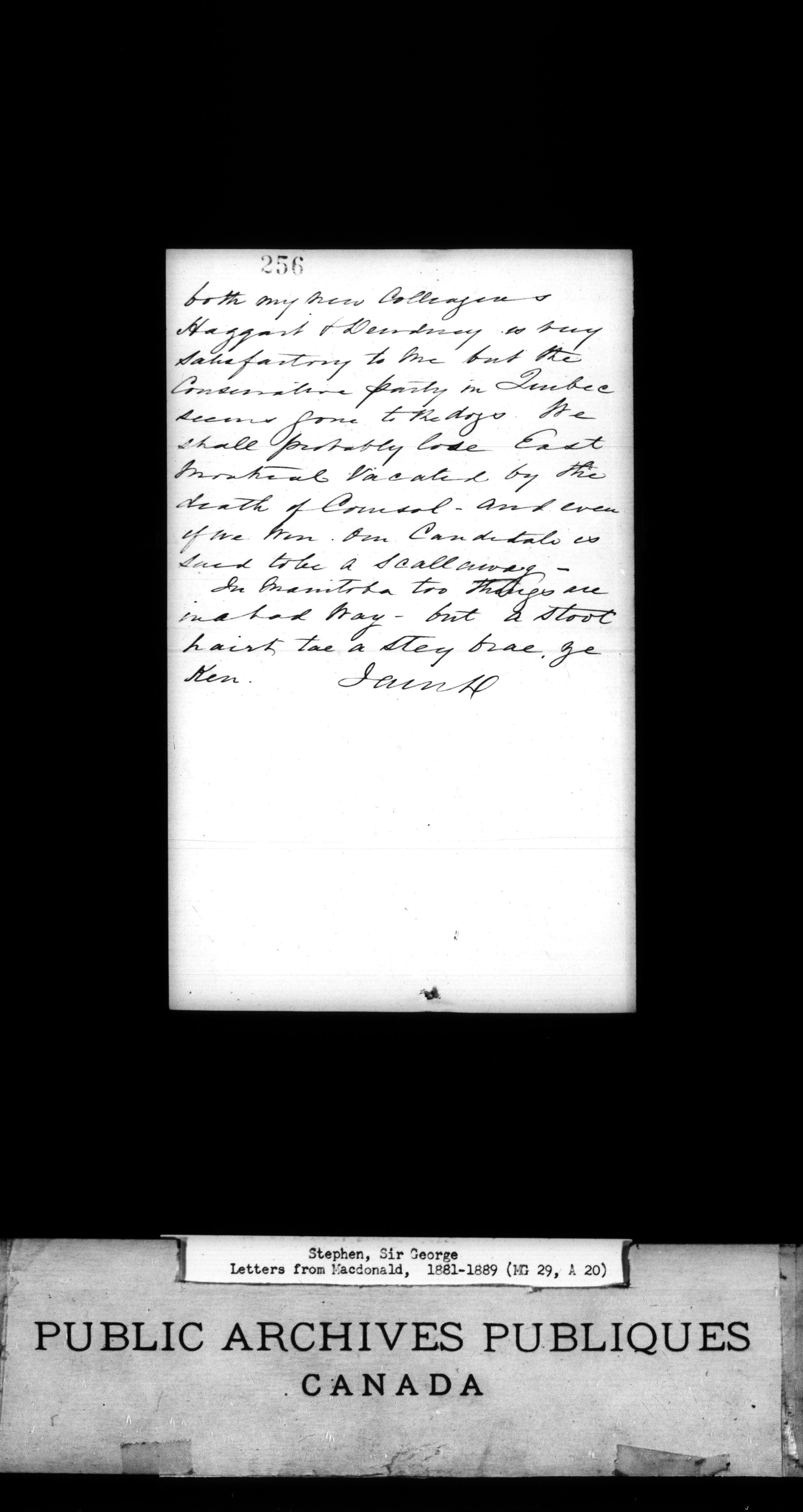 Stephen, Sir George - microfilm copy of 135 letters from Macdonald, 1881-1889 - 1486