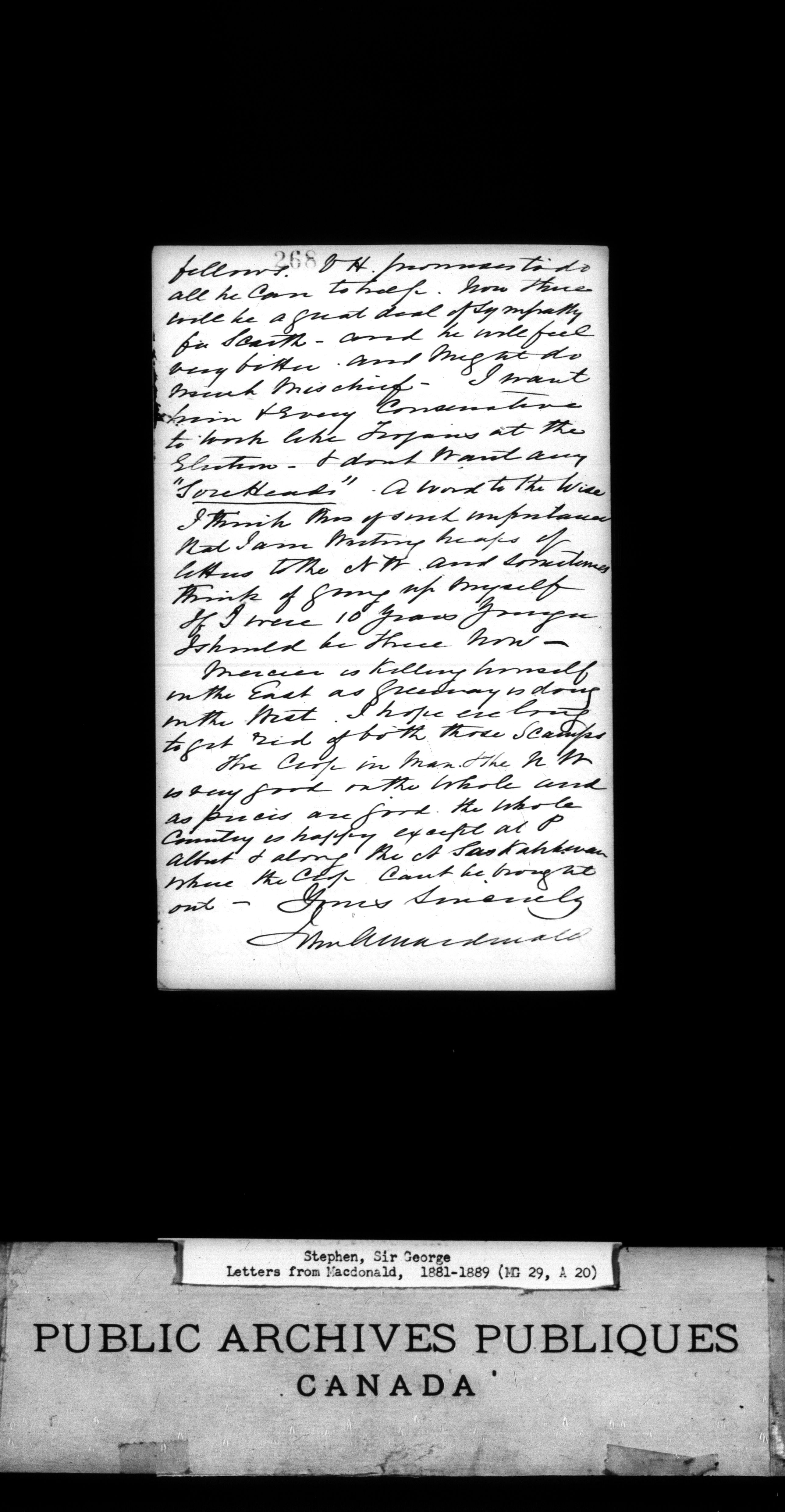 Stephen, Sir George - microfilm copy of 135 letters from Macdonald, 1881-1889 - 1486