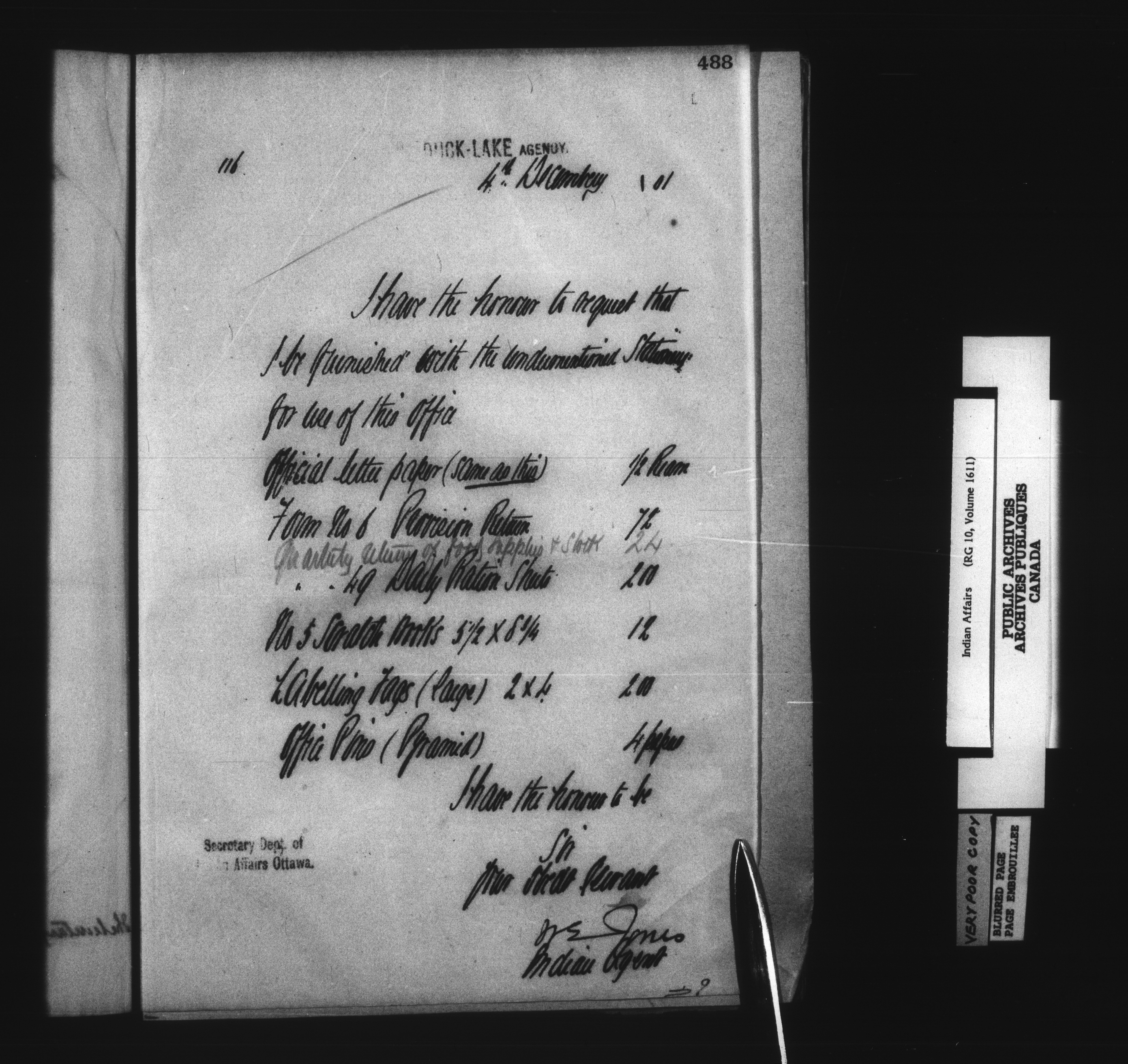 Department of Indian Affairs : Duck Lake Agency - 14865