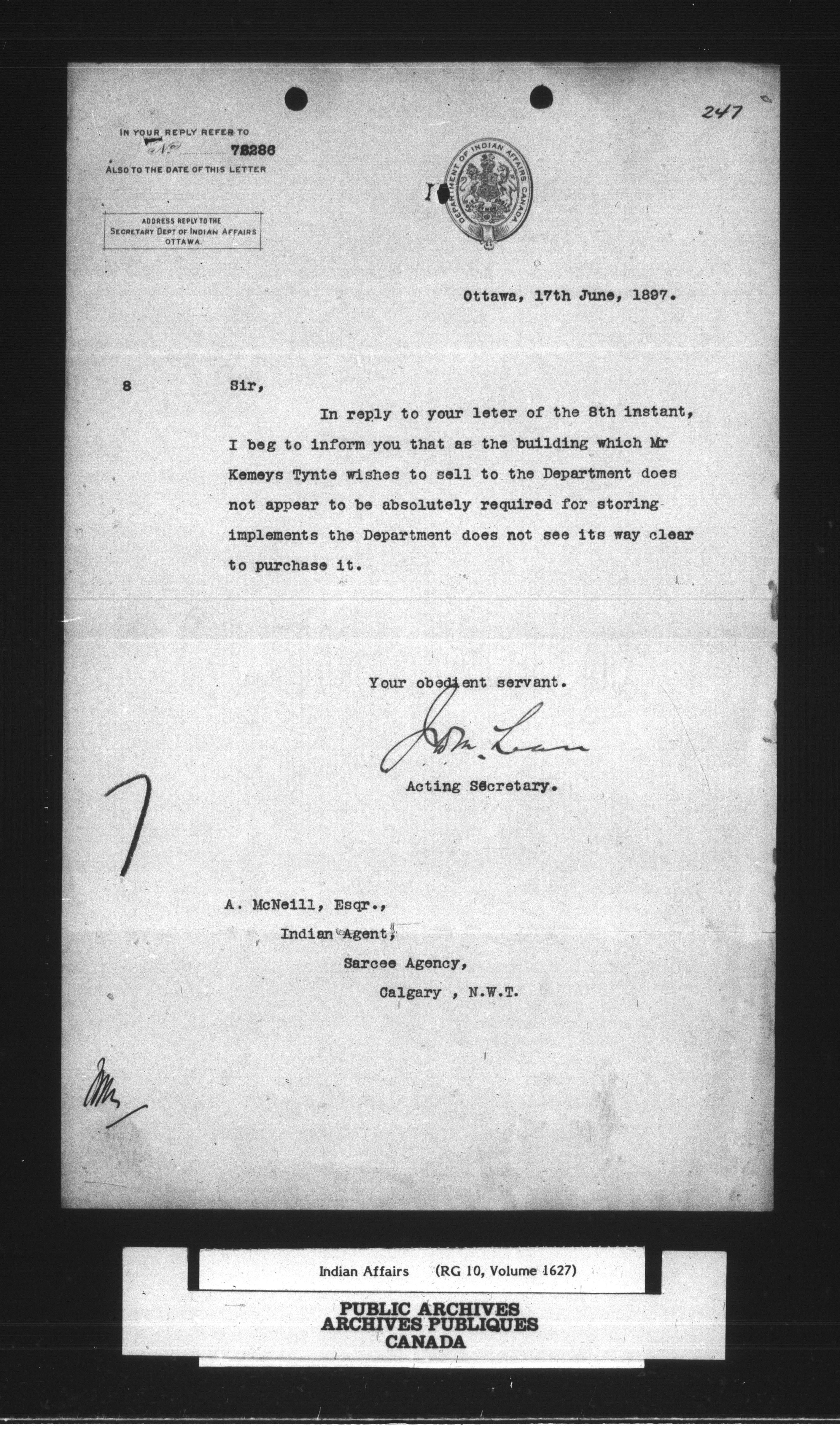 Department of Indian Affairs : Sarcee Agency : C-14869