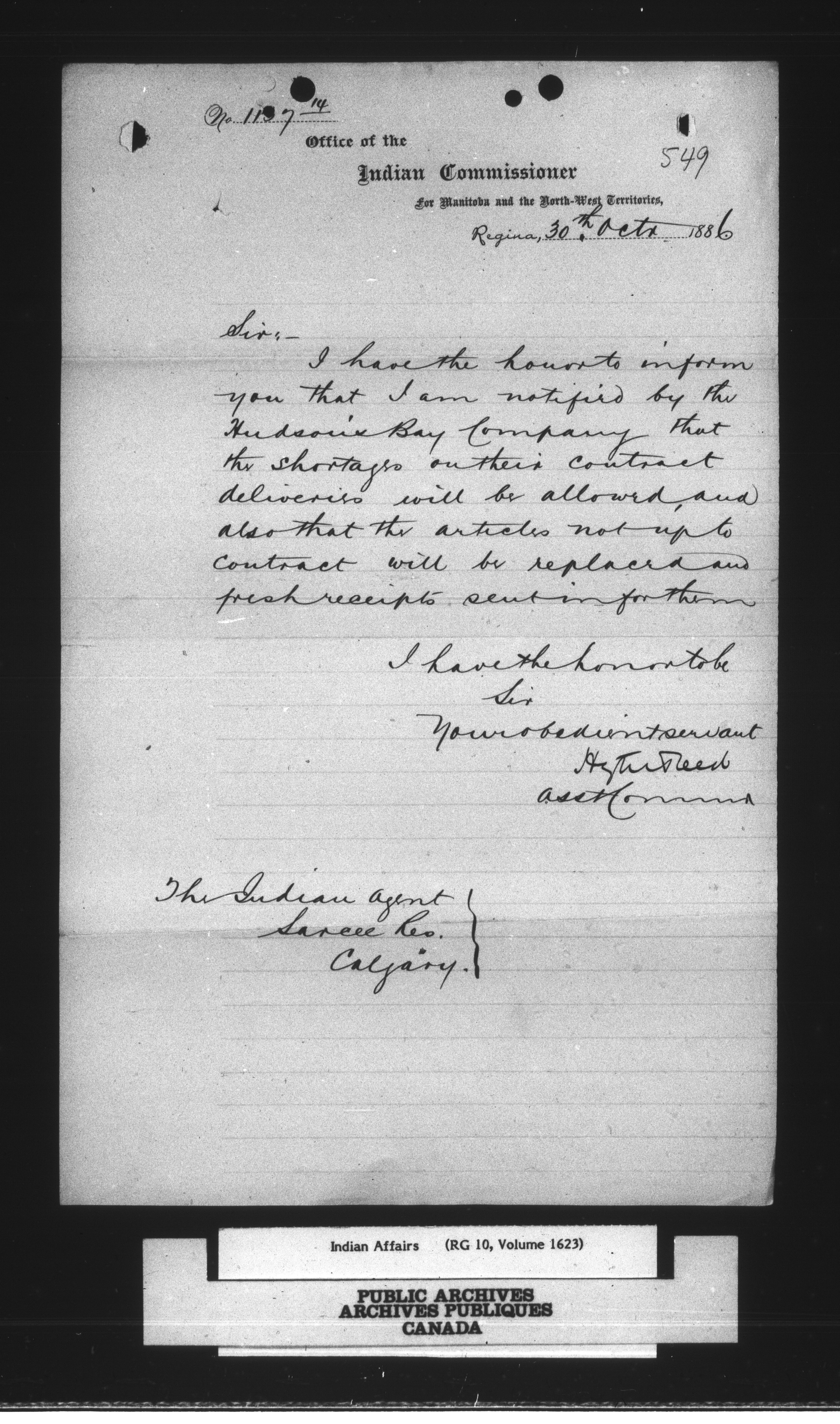 Department of Indian Affairs : Sarcee Agency : C-14869
