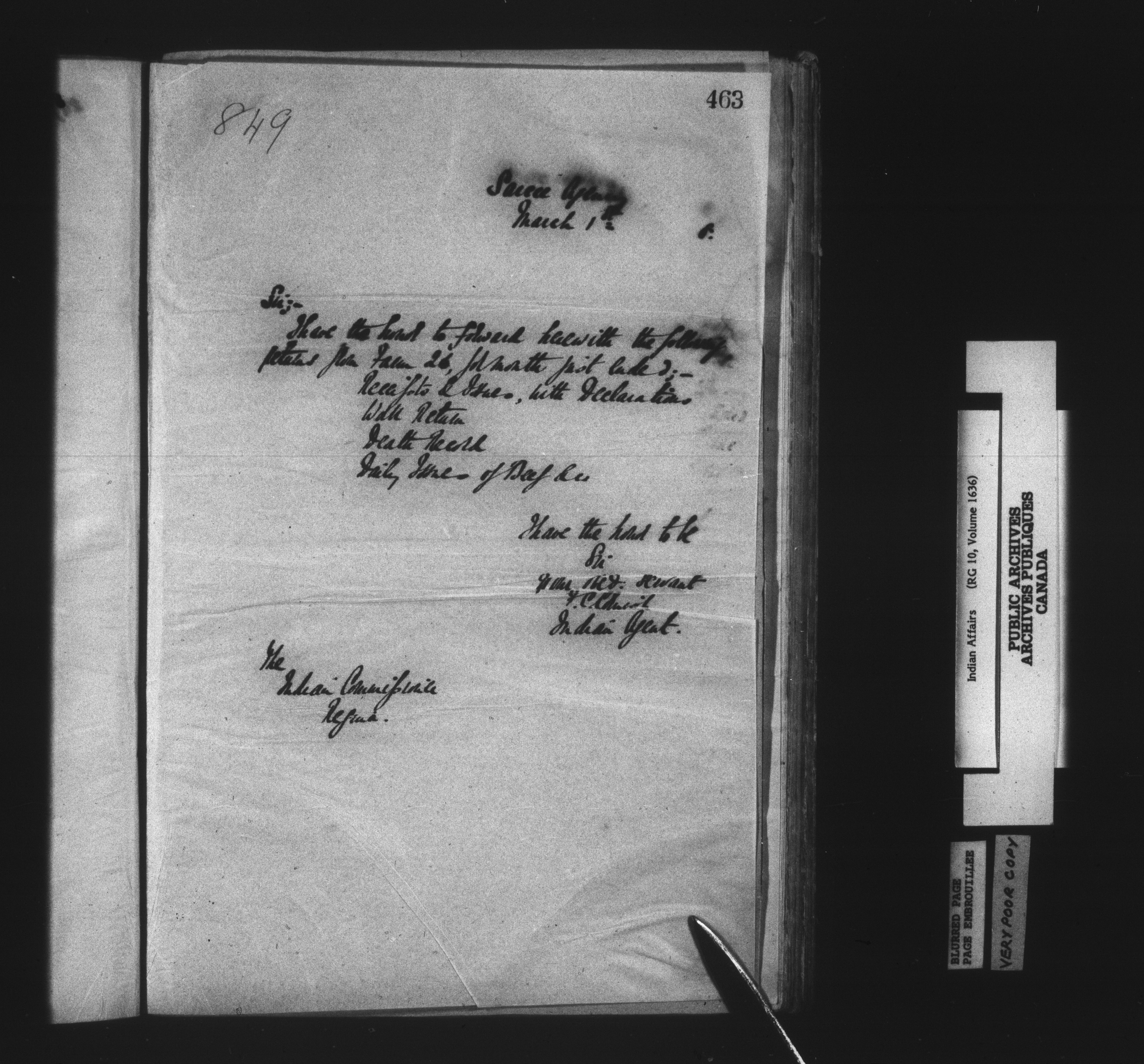 Department of Indian Affairs : Sarcee Agency : C-14871