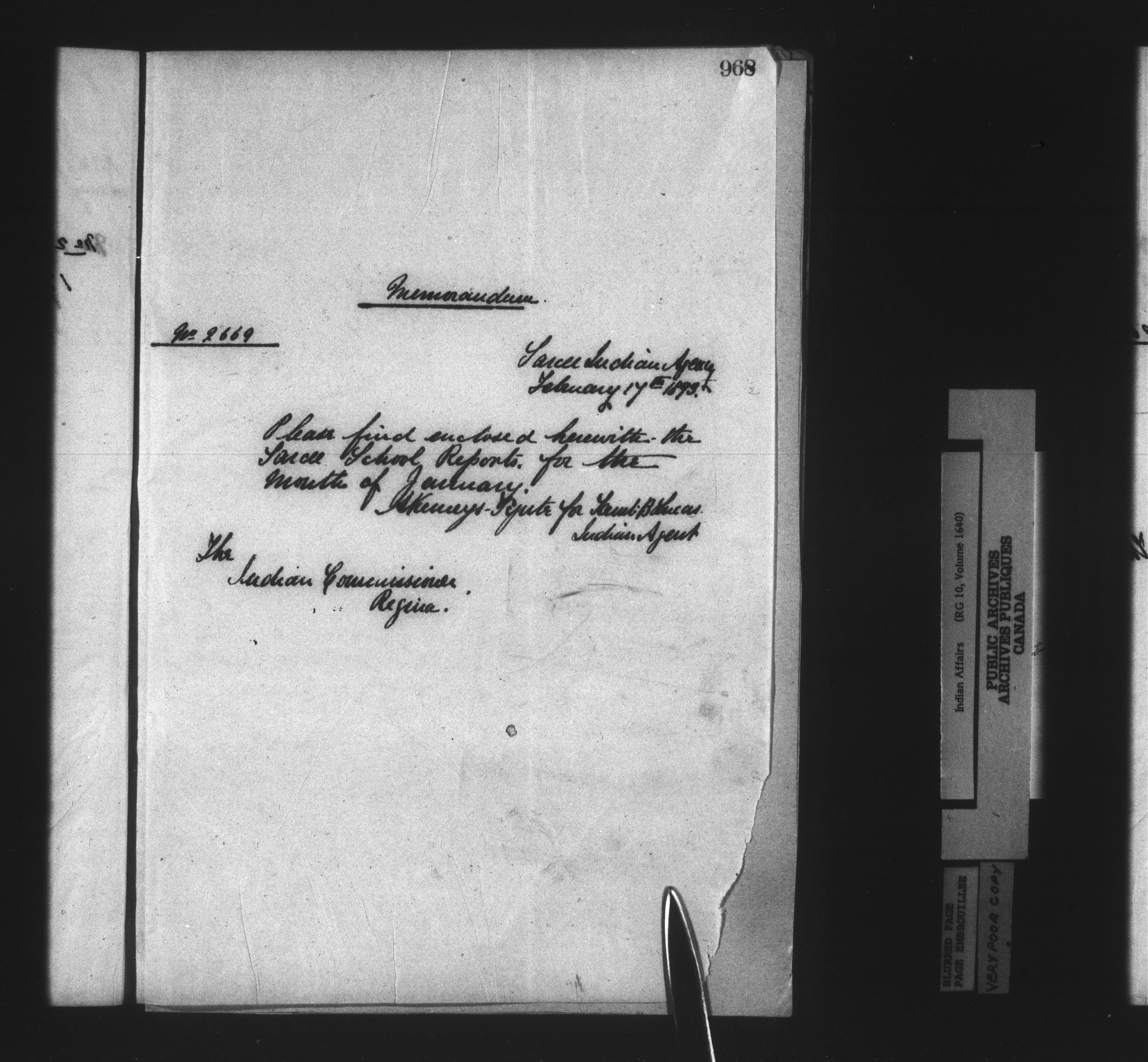 Department of Indian Affairs : Sarcee Agency - 14873