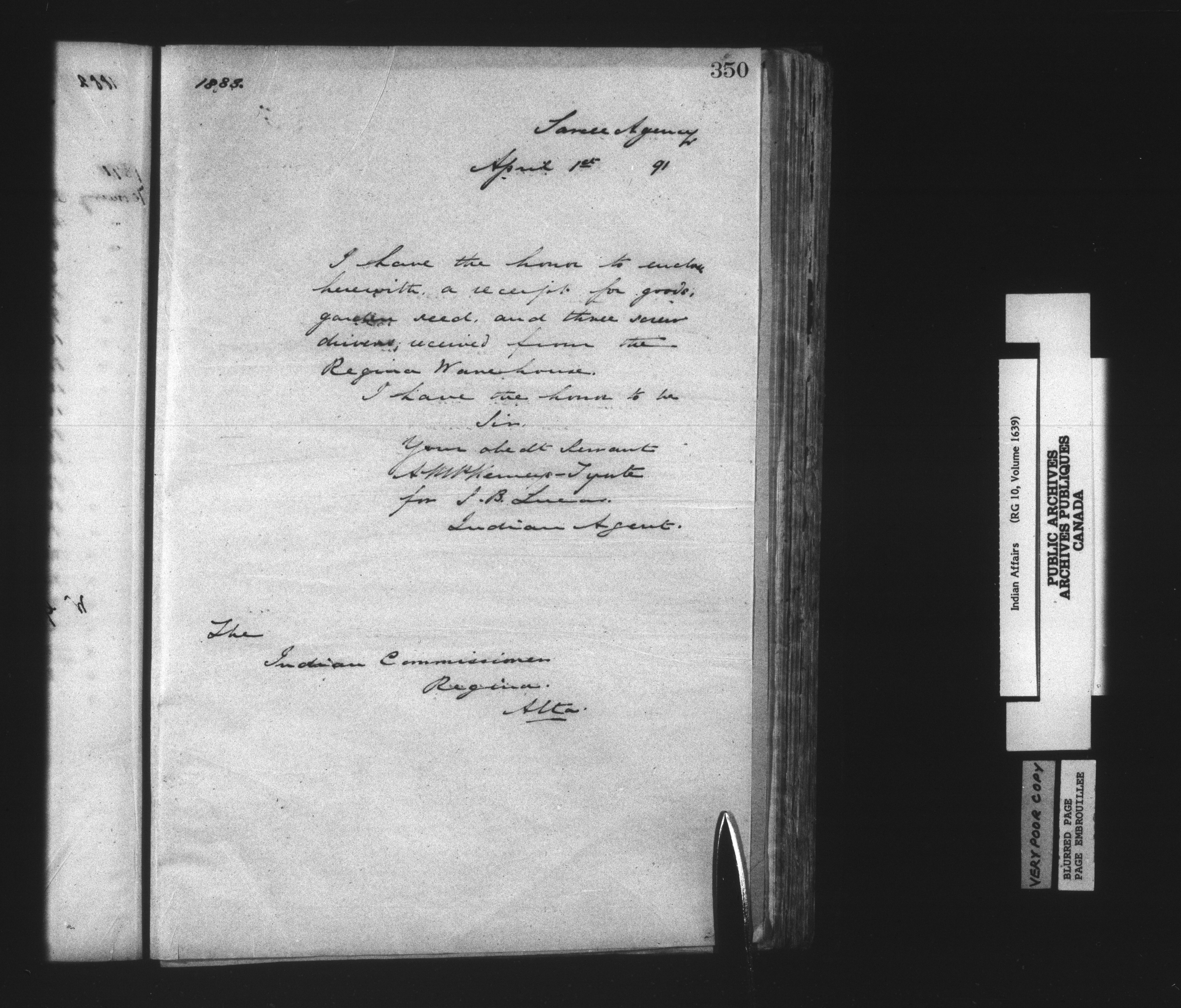 Department of Indian Affairs : Sarcee Agency : C-14873