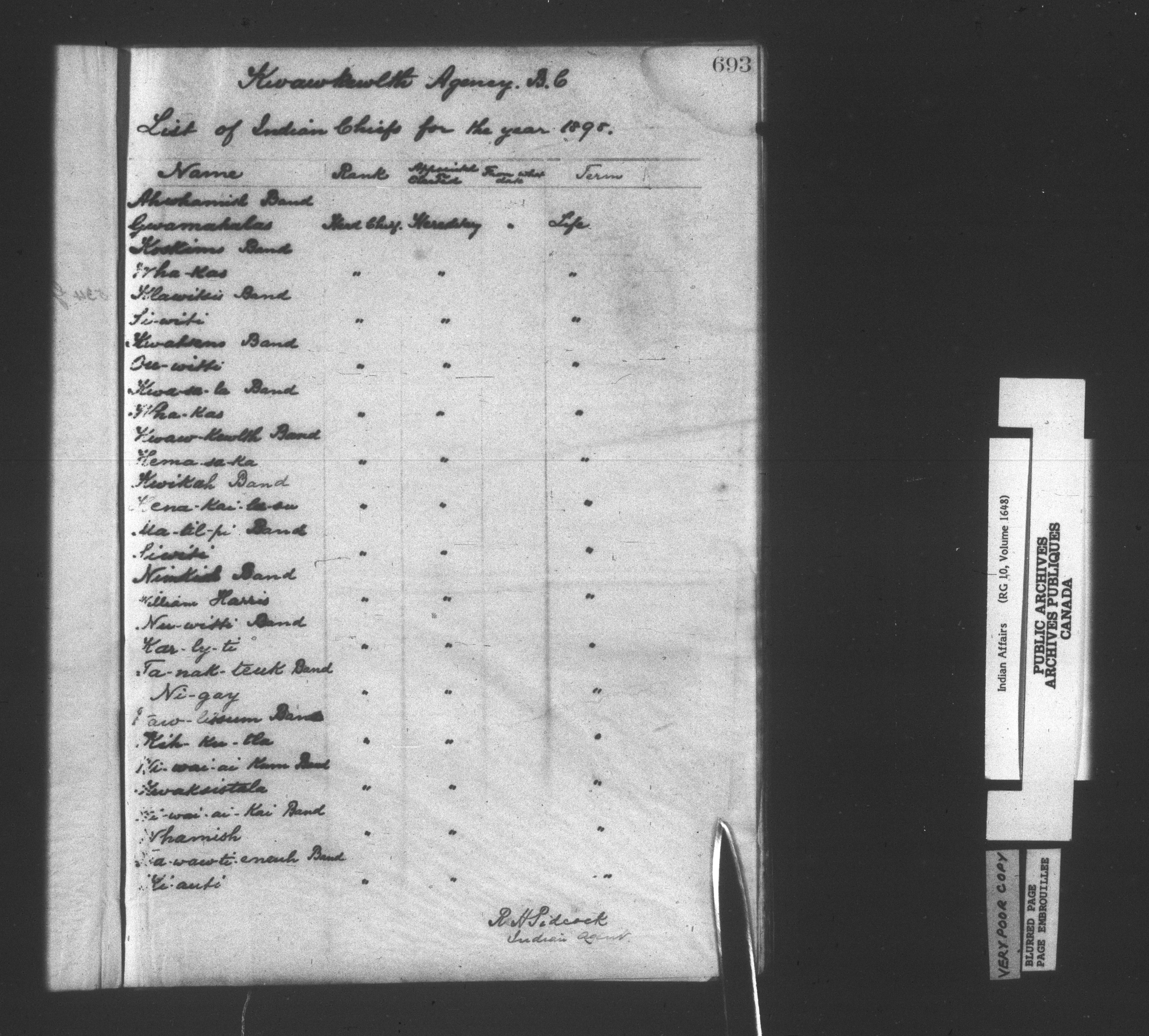 Department of Indian Affairs : Kwawkewith Agency - 14876