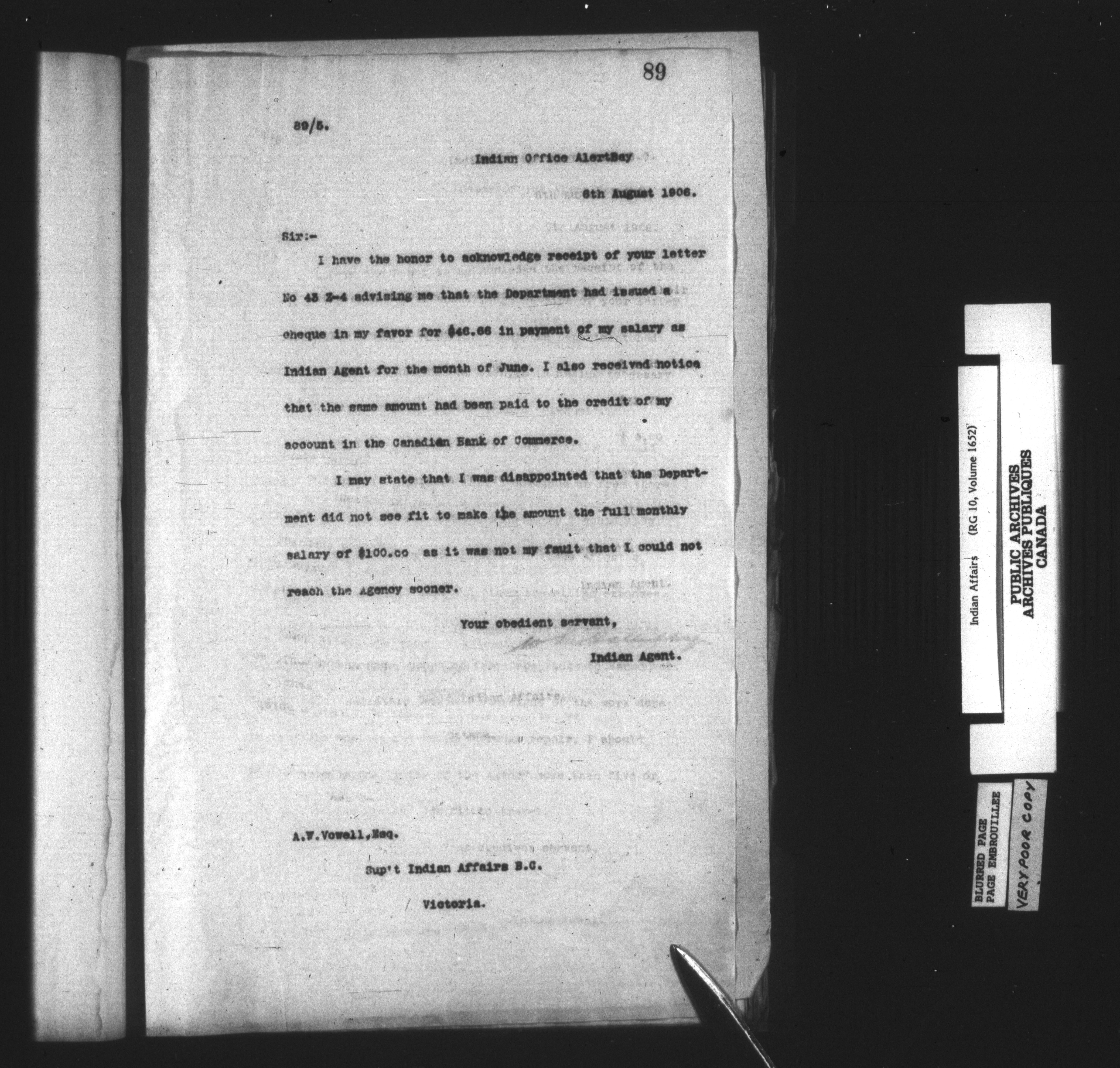Department of Indian Affairs : Kwawkewlth Agency : C-14877