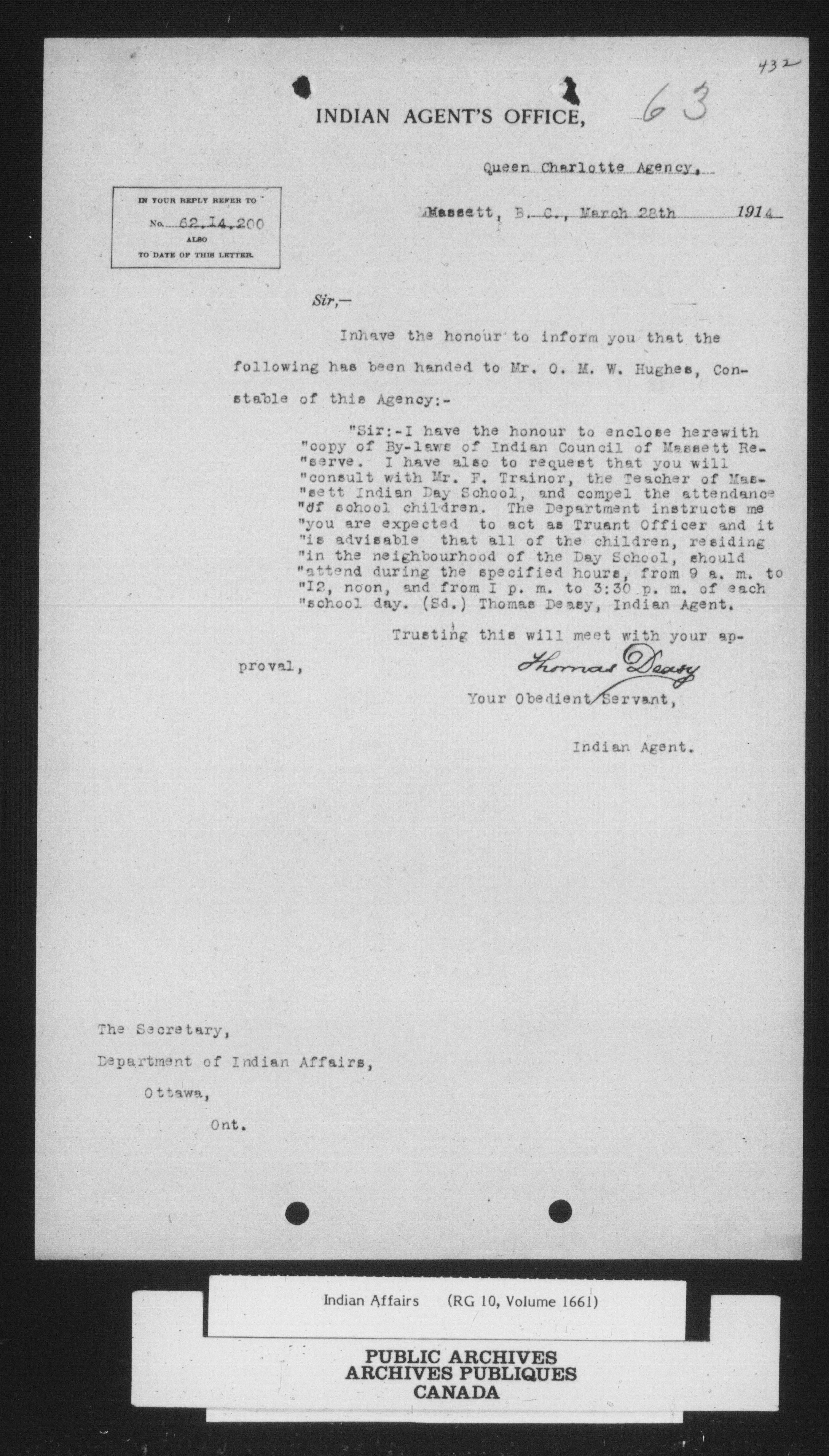 Department of Indian Affairs : Assiniboine Agency - 14880