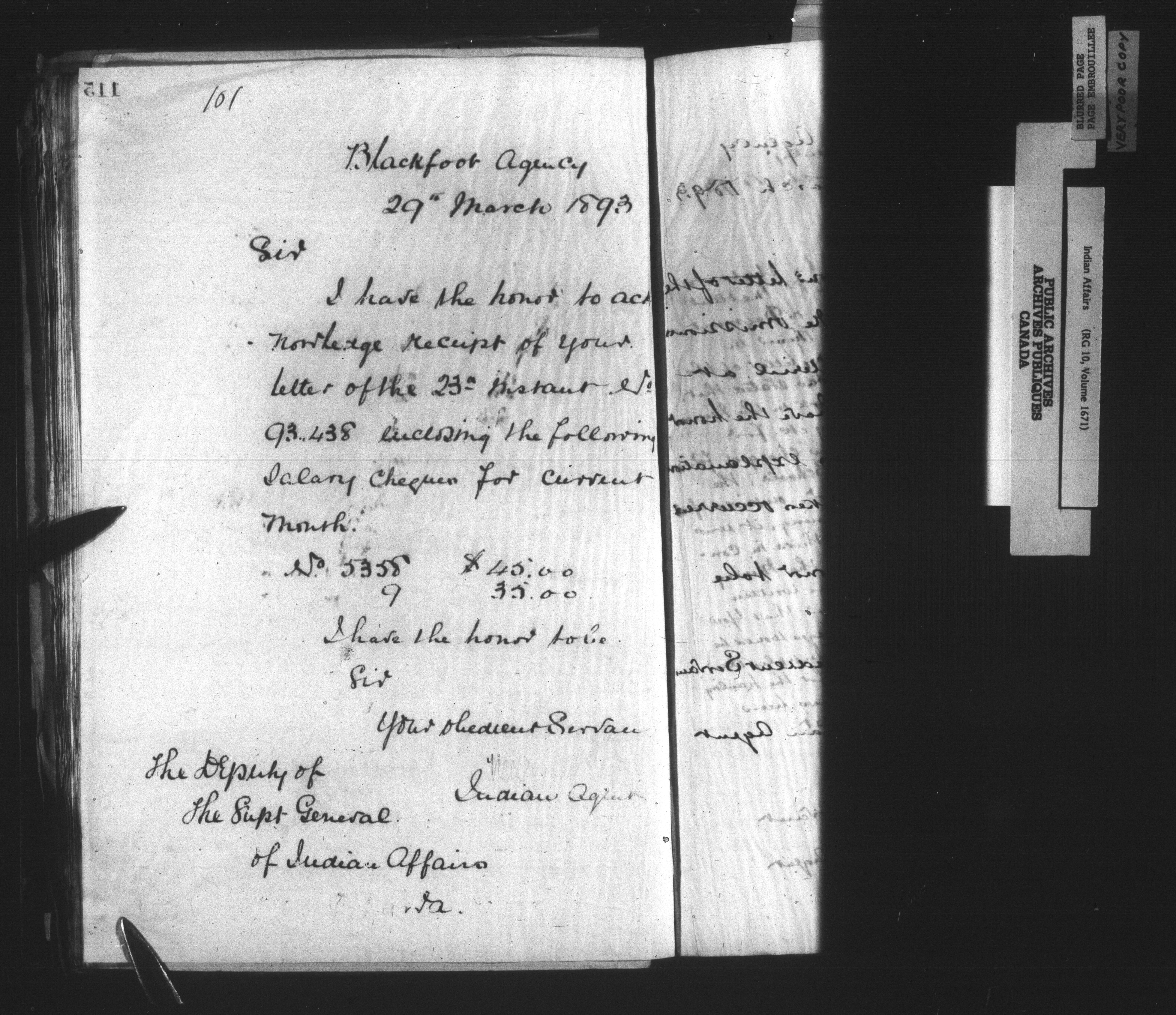 Department of Indian Affairs : Blackfoot Agency : C-14883