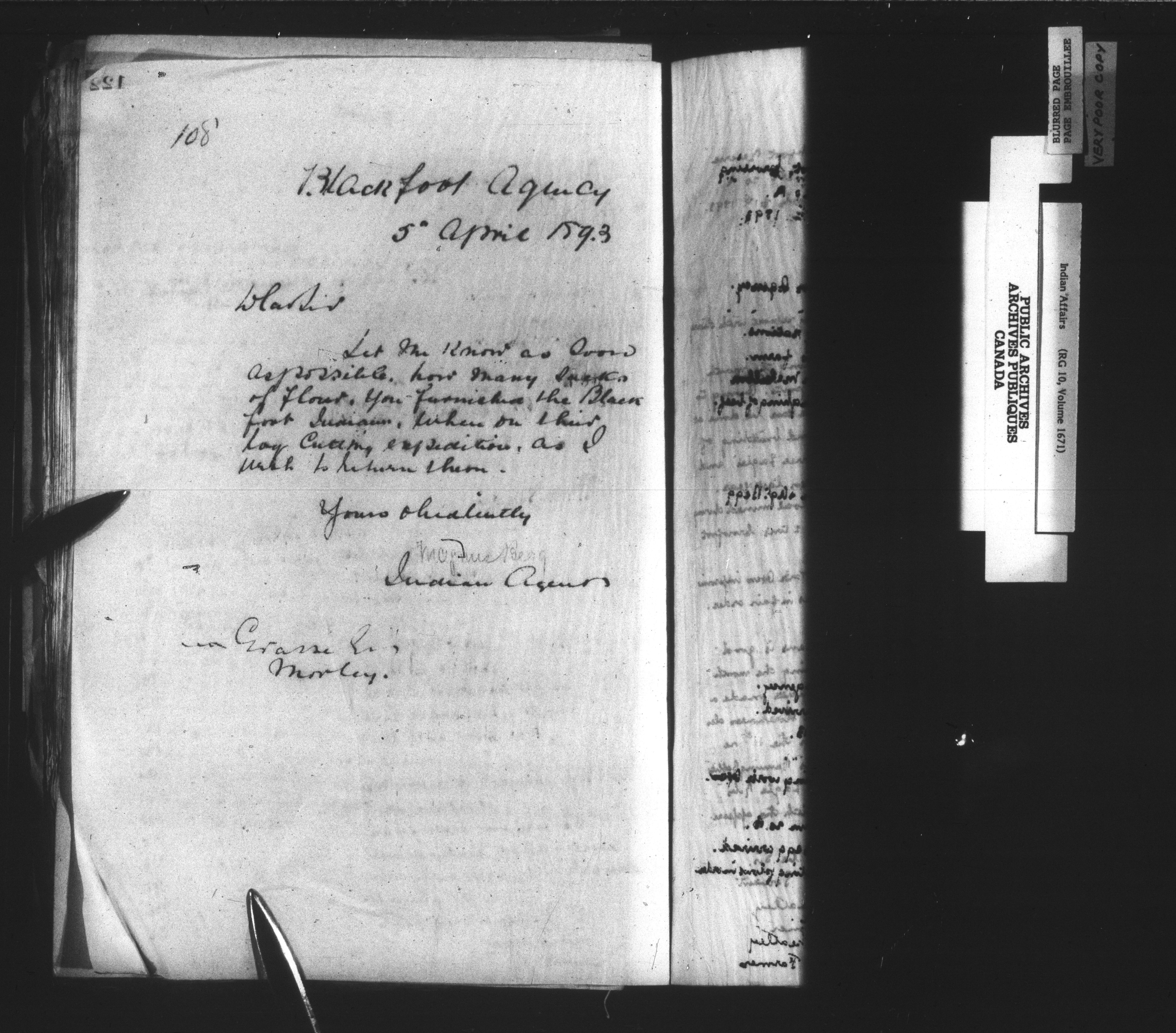 Department of Indian Affairs : Blackfoot Agency : C-14883