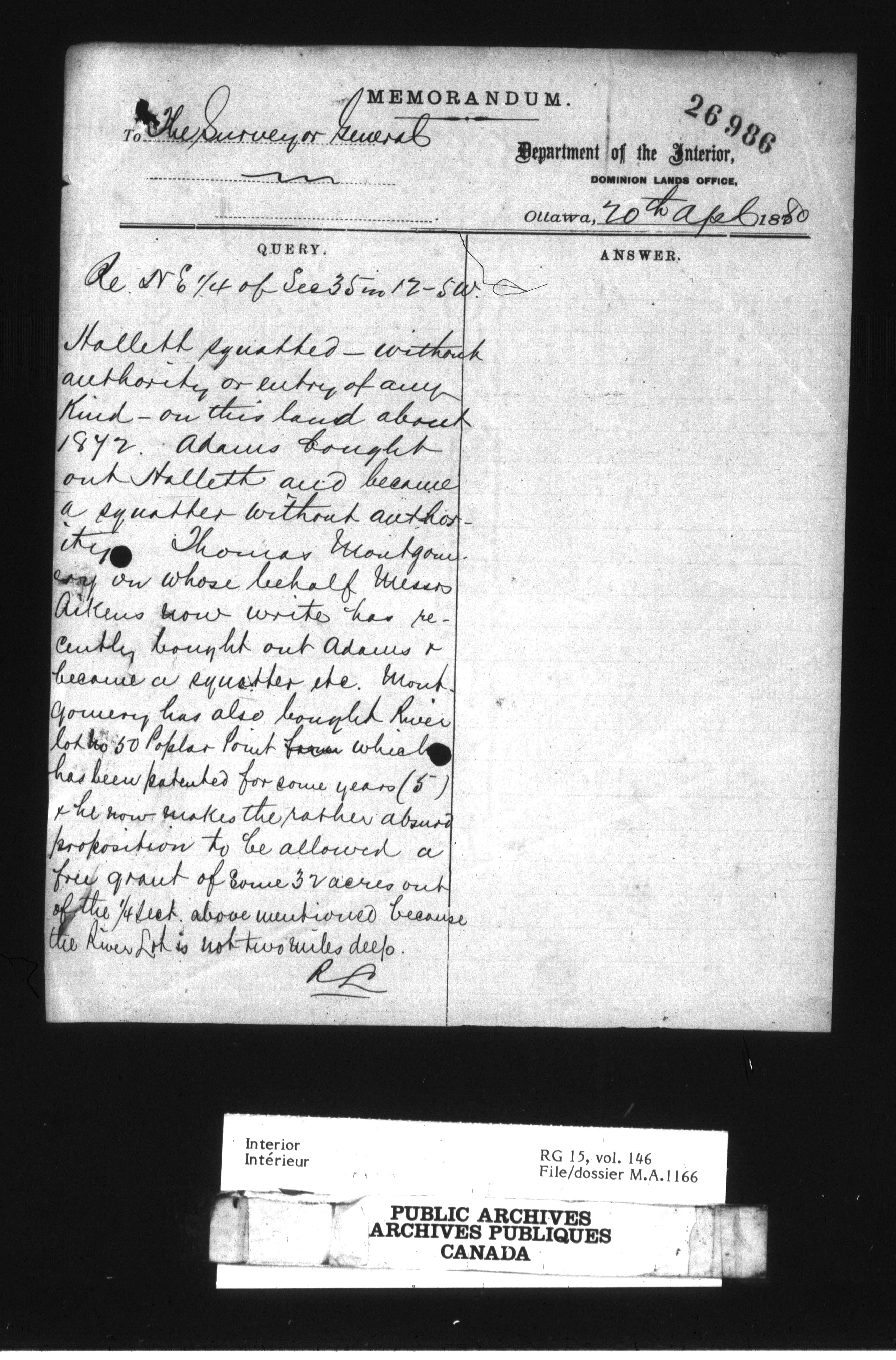 Dominion Lands Branch : Manitoba Act files - 14909