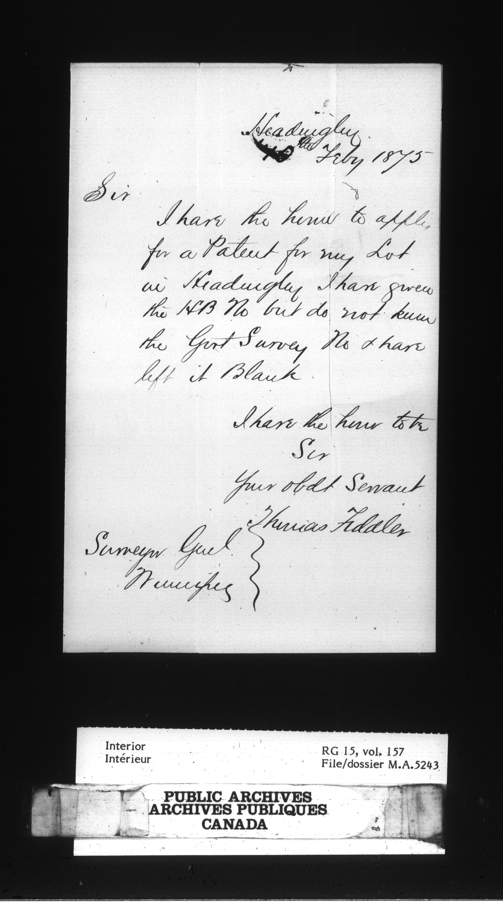 Dominion Lands Branch : Manitoba Act files : C-14917