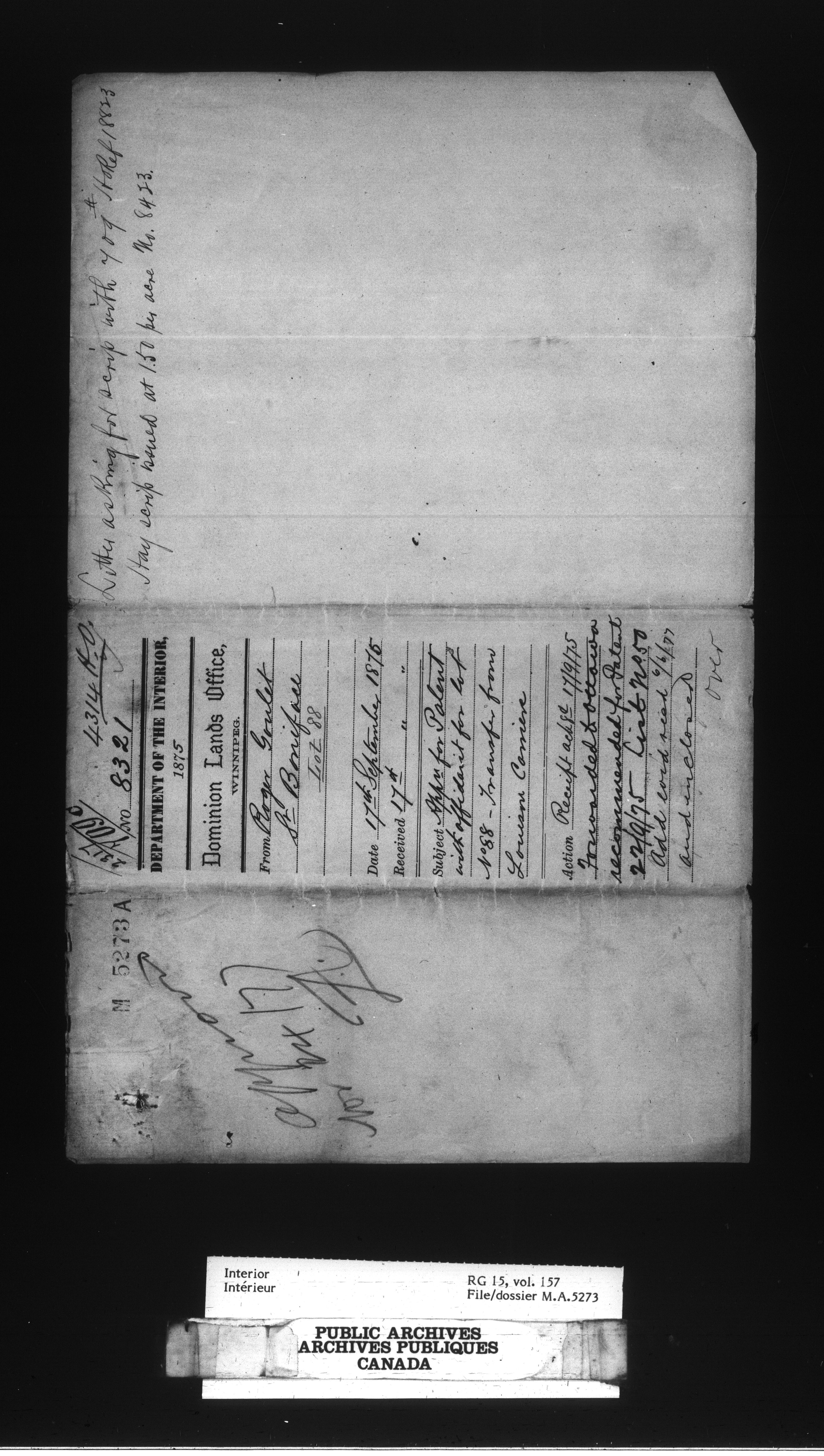 Dominion Lands Branch : Manitoba Act files - 14917