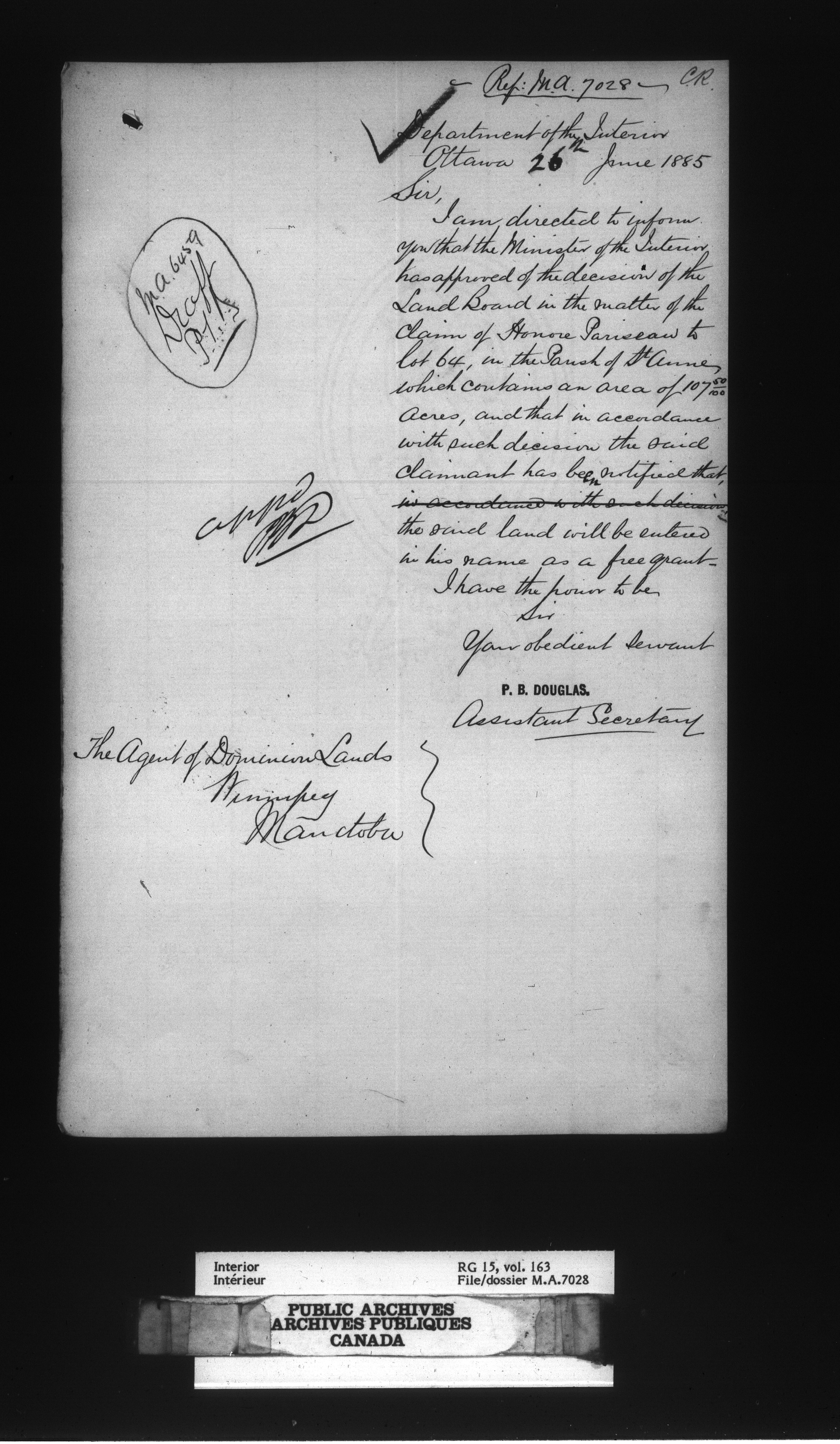 Dominion Lands Branch : Manitoba Act files - 14920