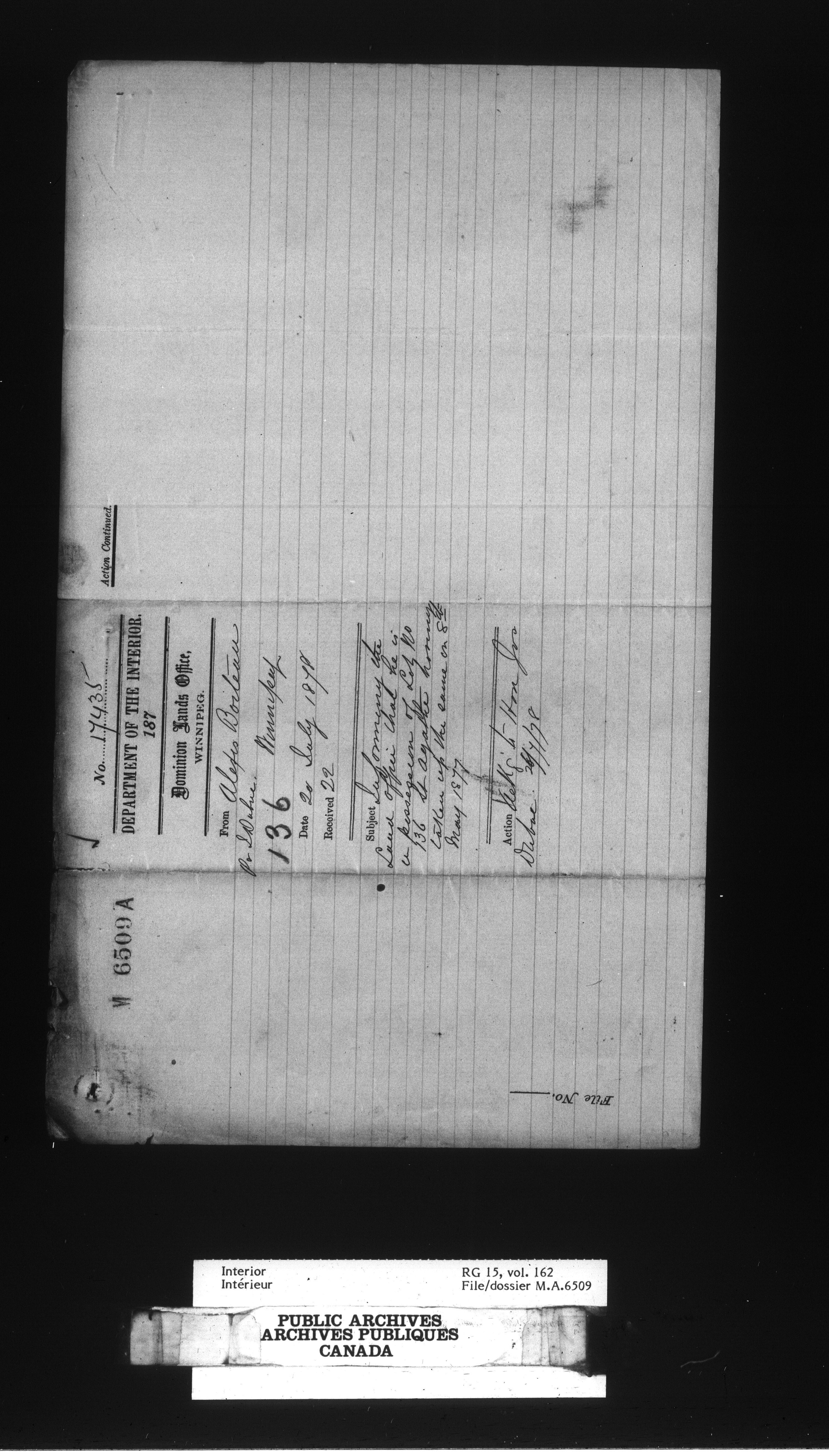 Dominion Lands Branch : Manitoba Act files : C-14920