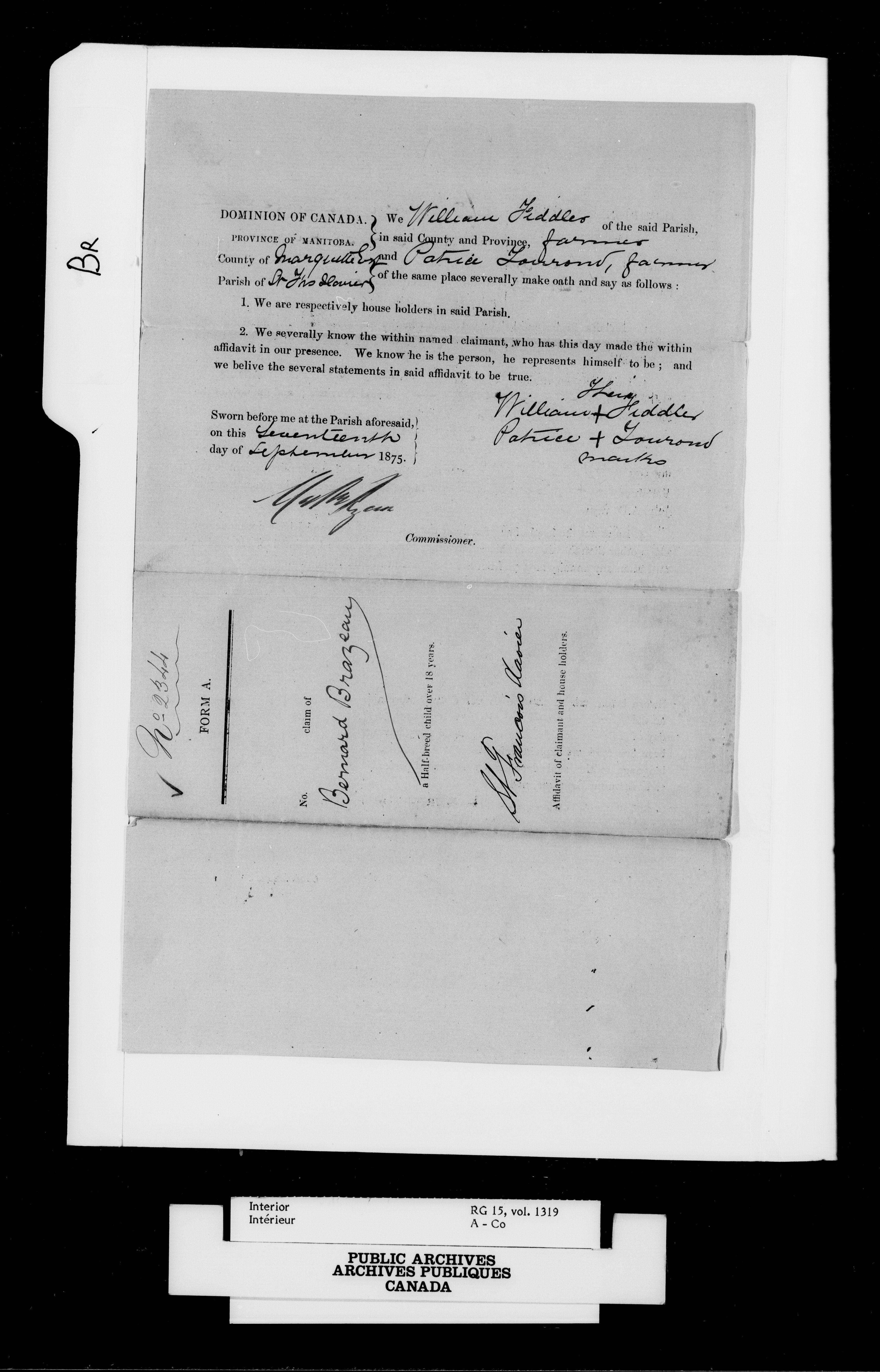 Department of the Interior, Dominion Lands Branch : Métis and original White settlers affidavits - 14926