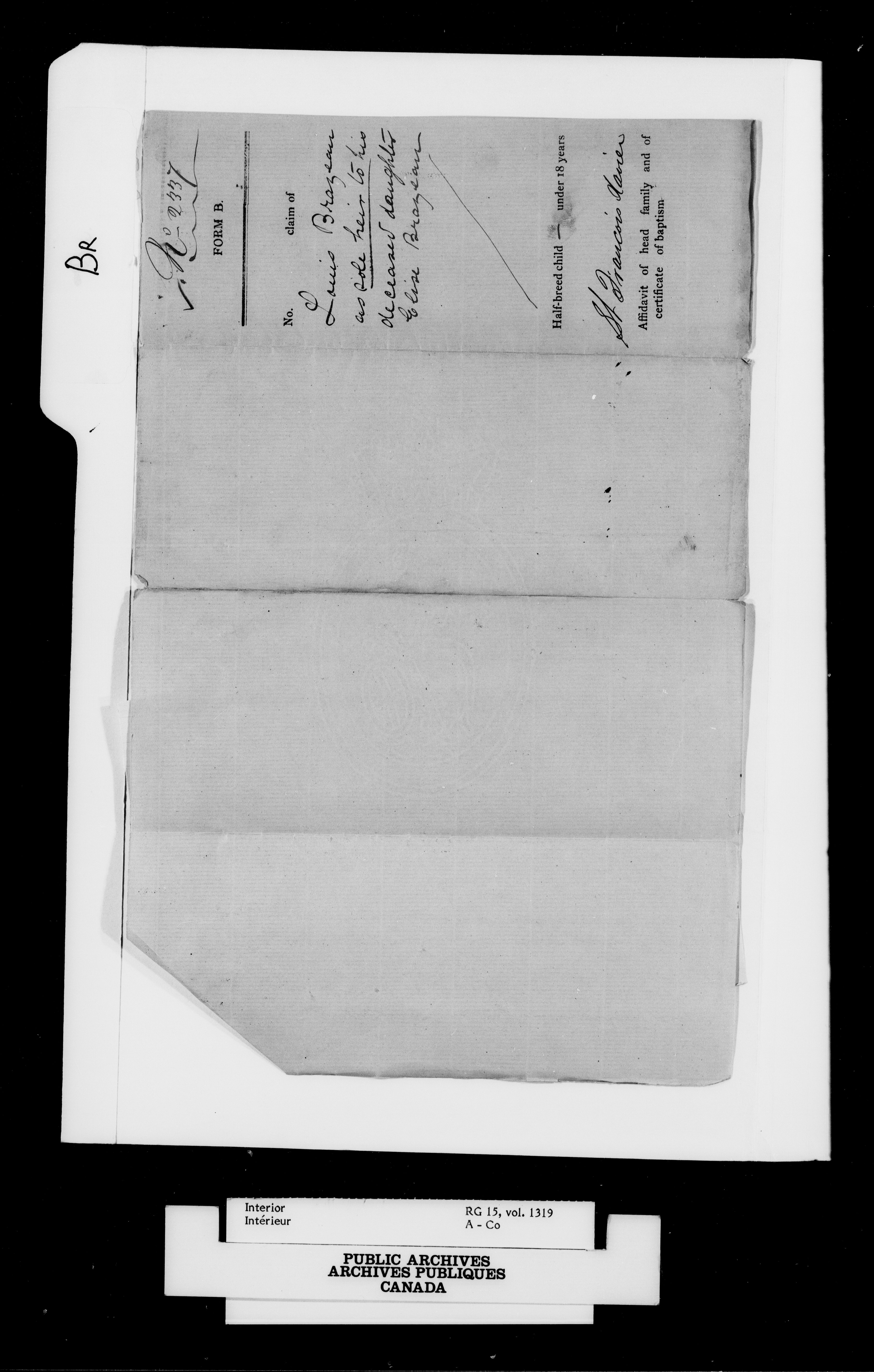 Department of the Interior, Dominion Lands Branch : Métis and original White settlers affidavits - 14926