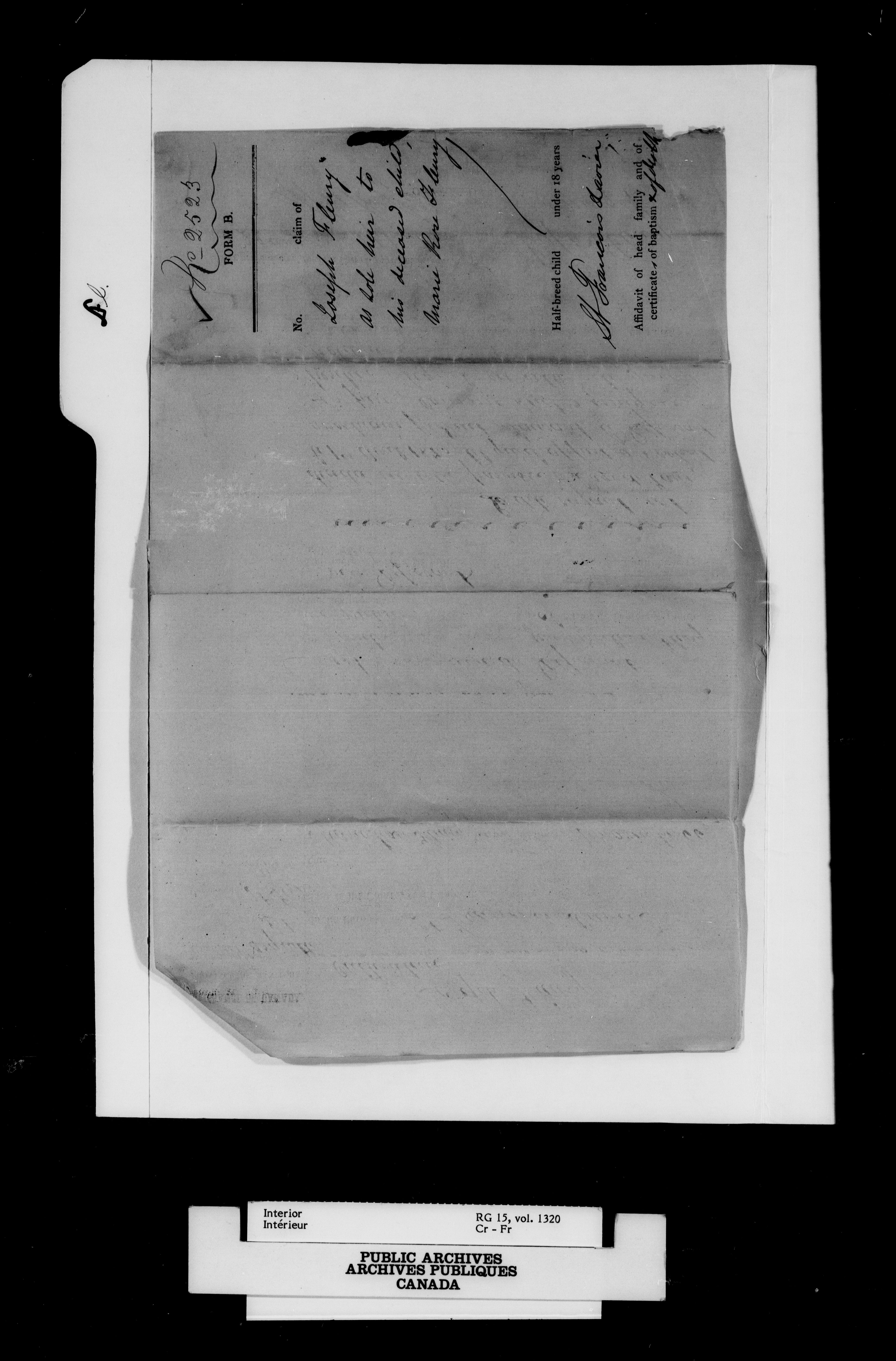 Department of the Interior, Dominion Lands Branch : Métis and original White settlers affidavits - 14928