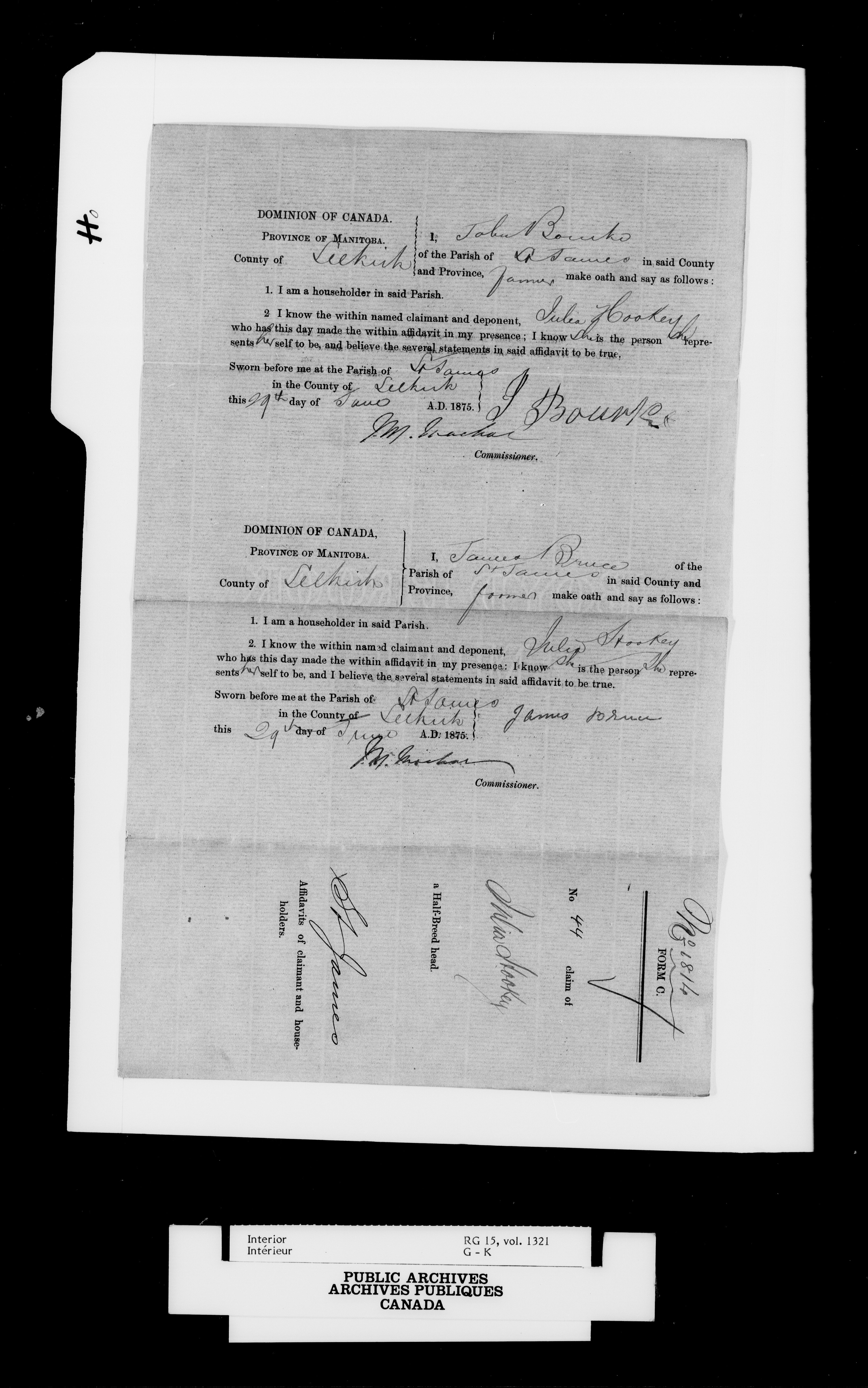 Department of the Interior, Dominion Lands Branch : Métis and original White settlers affidavits - 14929