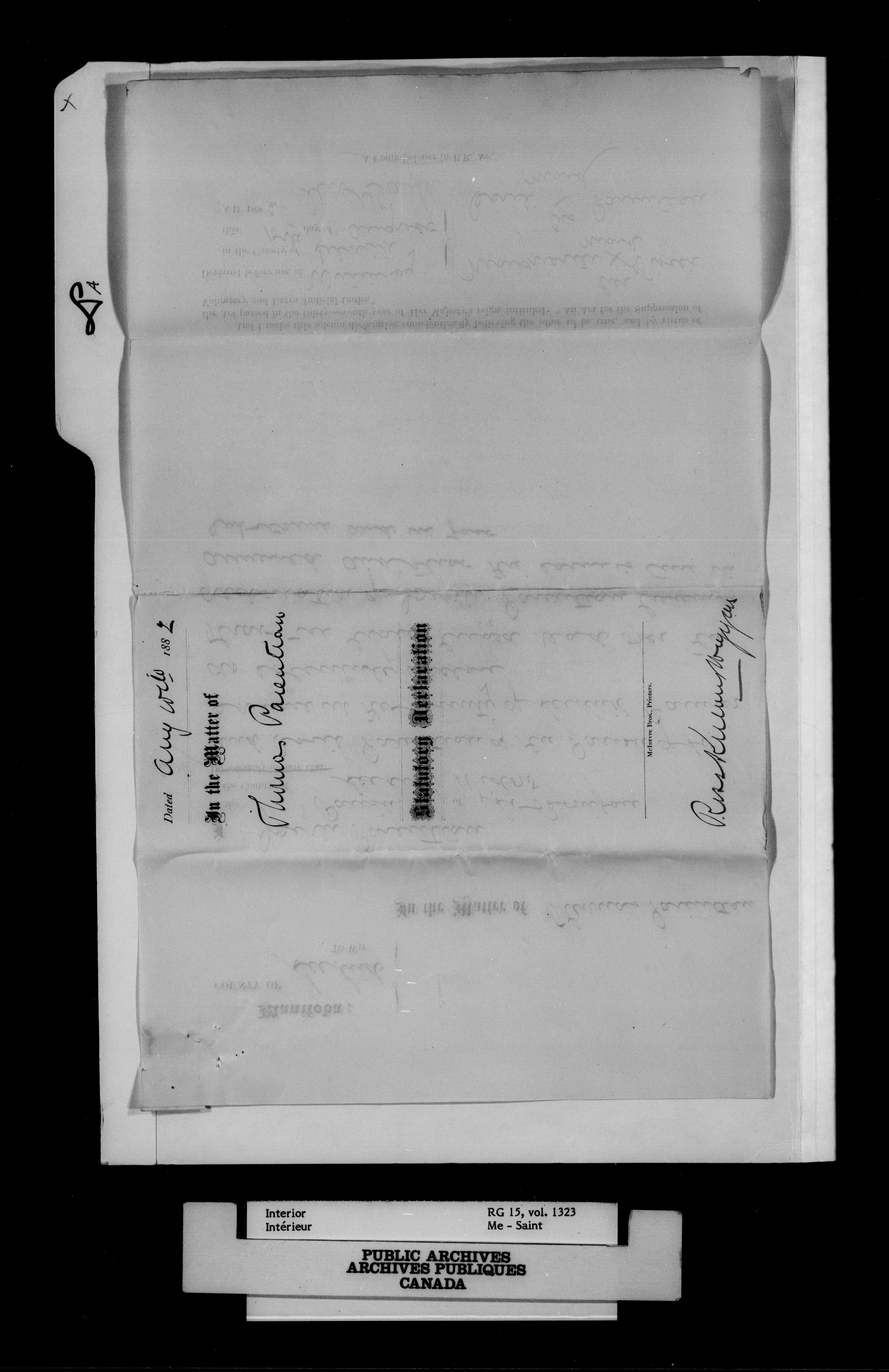 Department of the Interior, Dominion Lands Branch : Métis and original White settlers affidavits - 14931