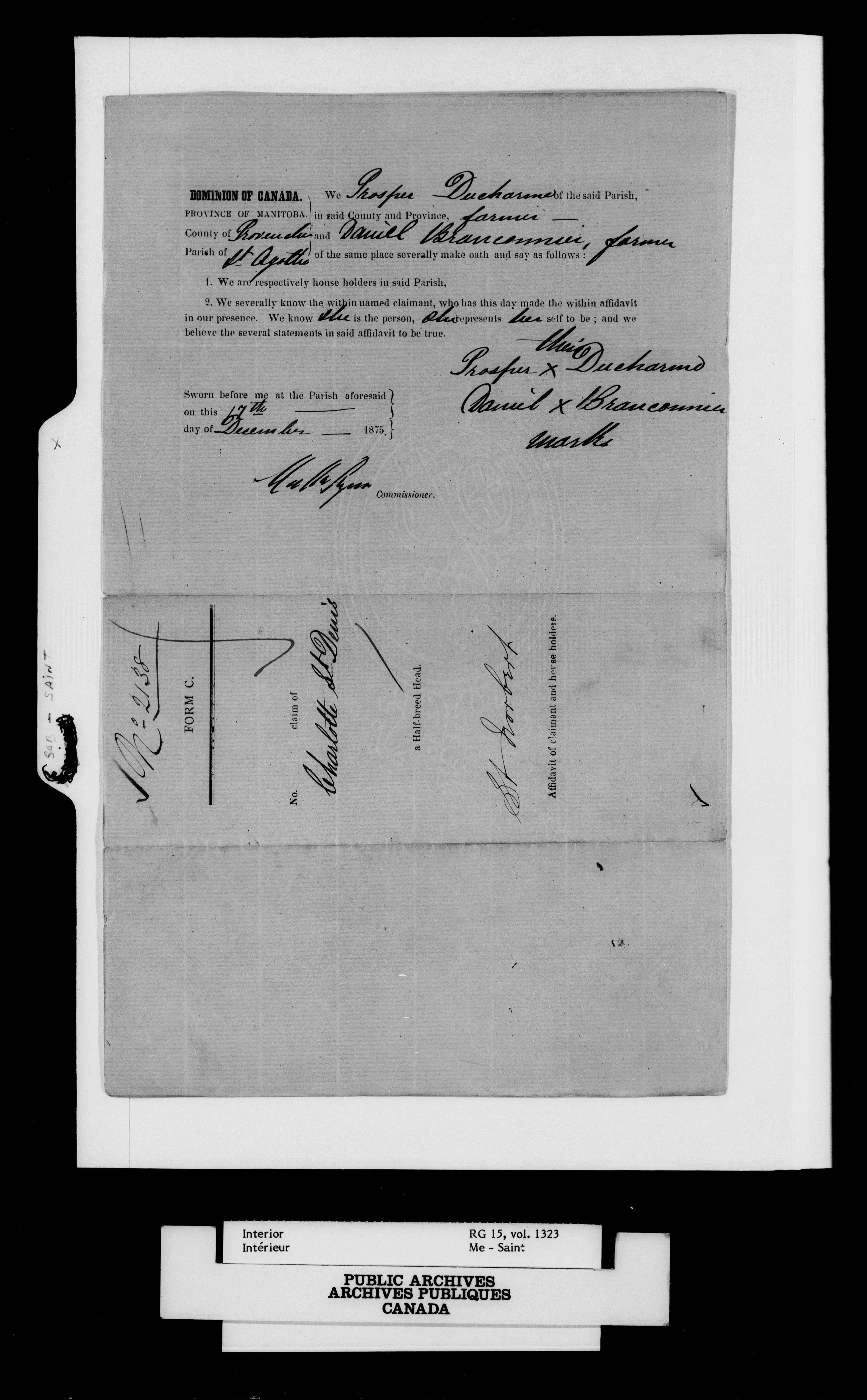 Department of the Interior, Dominion Lands Branch : Métis and original White settlers affidavits - 14932
