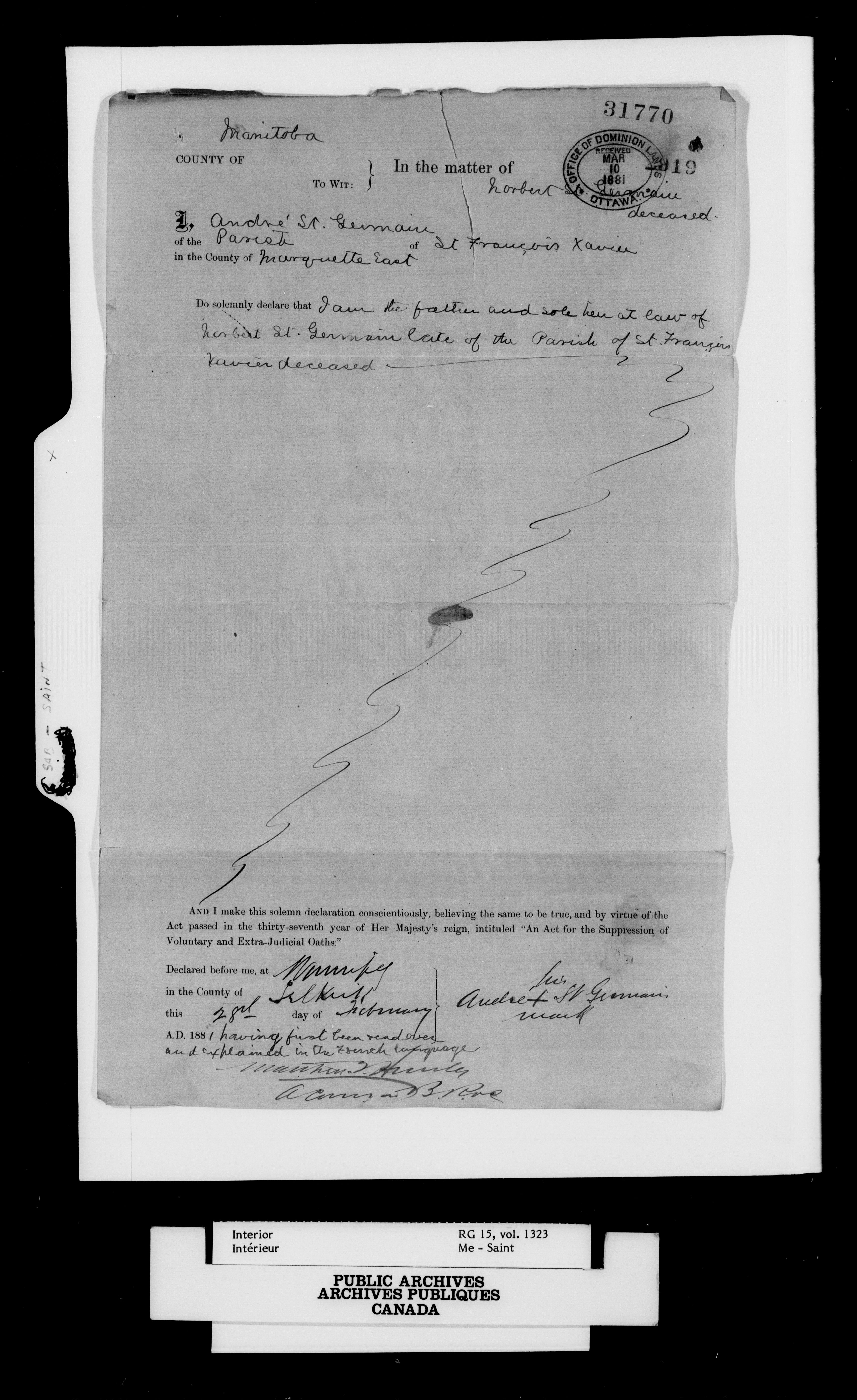 Department of the Interior, Dominion Lands Branch : Métis and original White settlers affidavits : C-14932